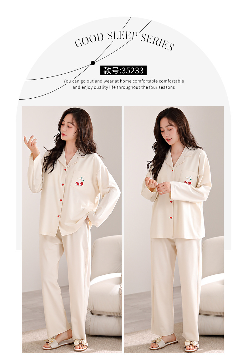 [가슴 패드로] 잠옷 여성 2020 봄 순면 긴팔 옷깃 가을과 겨울 플러스 사이즈 야외 홈웨어 세트스토어 가기