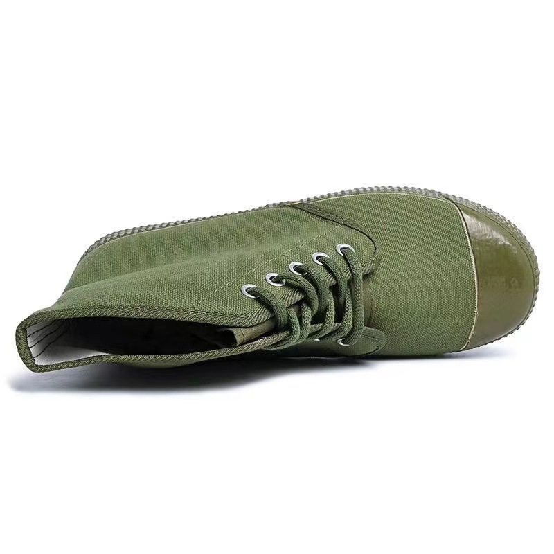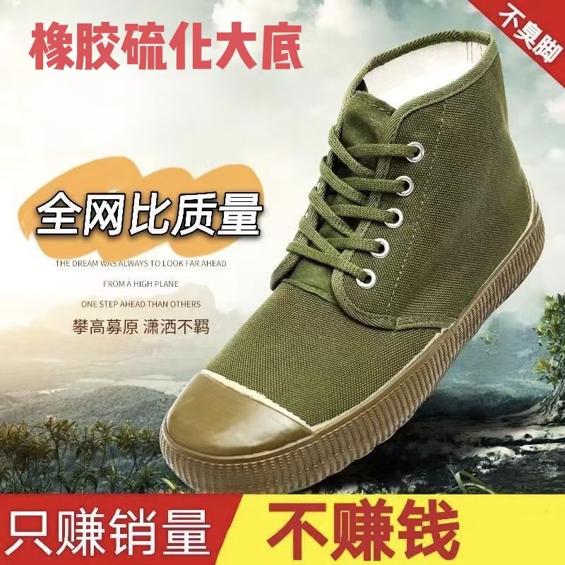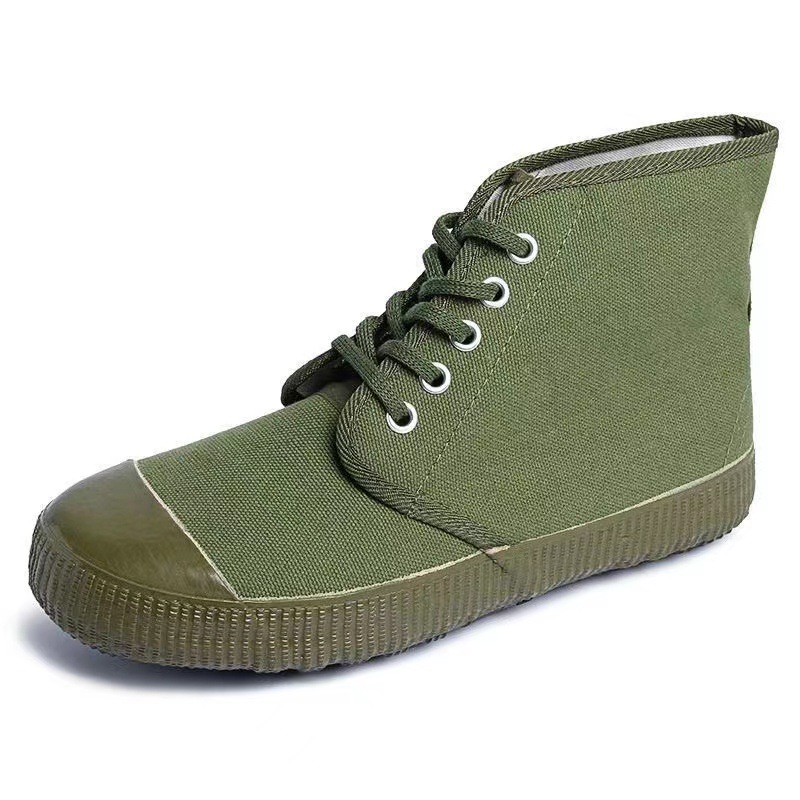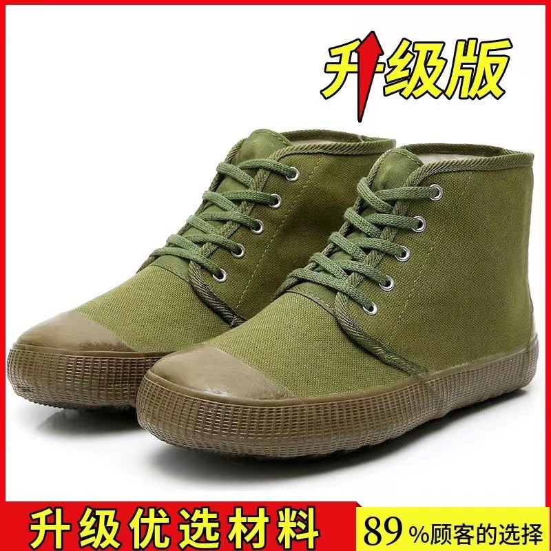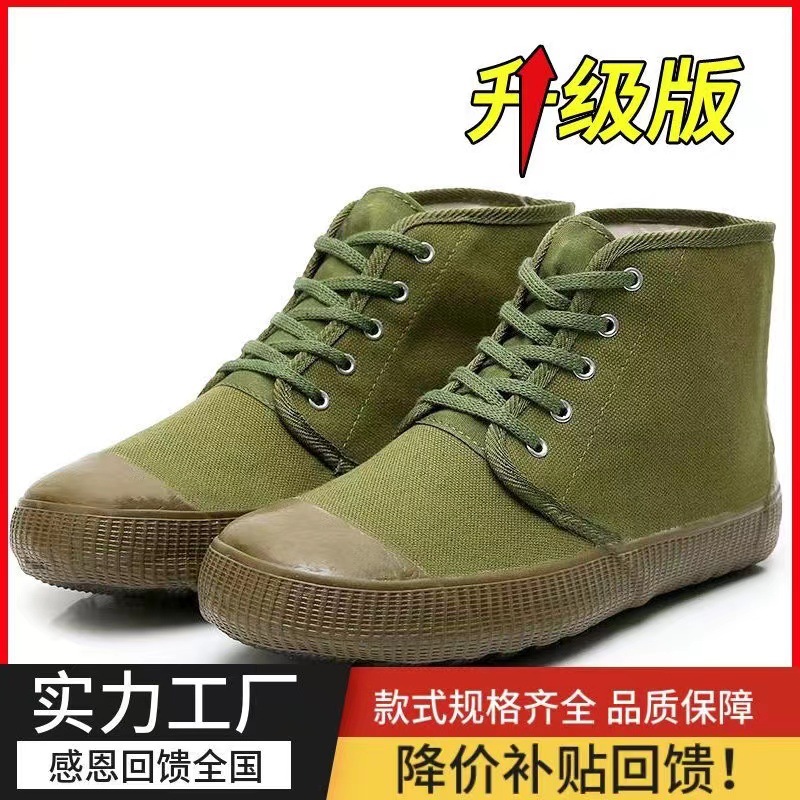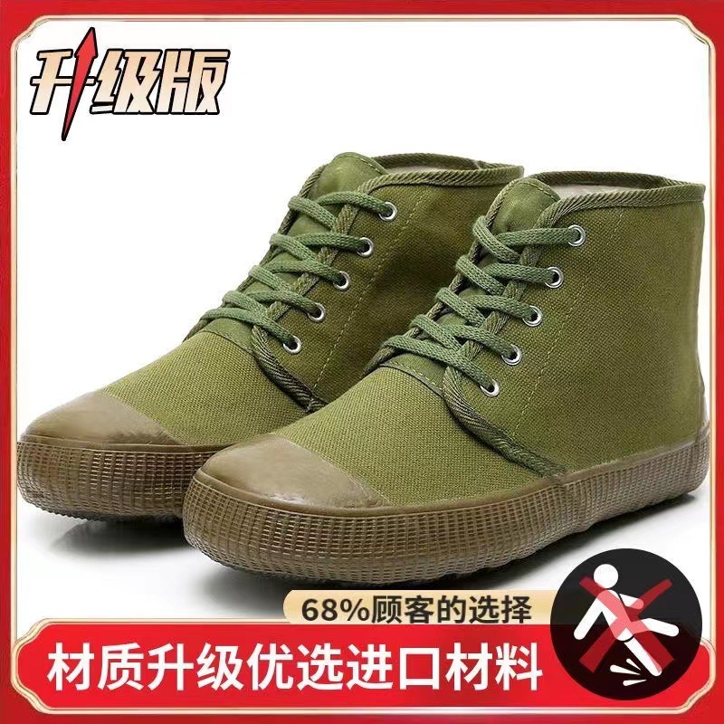 Jiefang 신발 남성 하이 탑 농지 신발 사이트 내마모성 미끄럼 방지 노동 보호 신발 여성 군사 훈련 신발 캔버스 통기성 노란색 고무 운동화