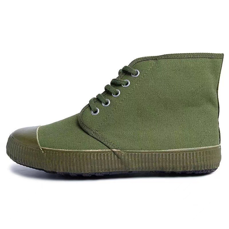 Jiefang 신발 남성 하이 탑 농지 신발 사이트 내마모성 미끄럼 방지 노동 보호 신발 여성 군사 훈련 신발 캔버스 통기성 노란색 고무 운동화스토어 가기