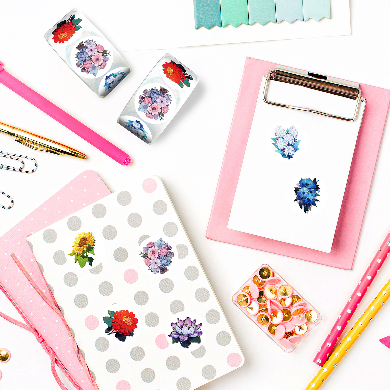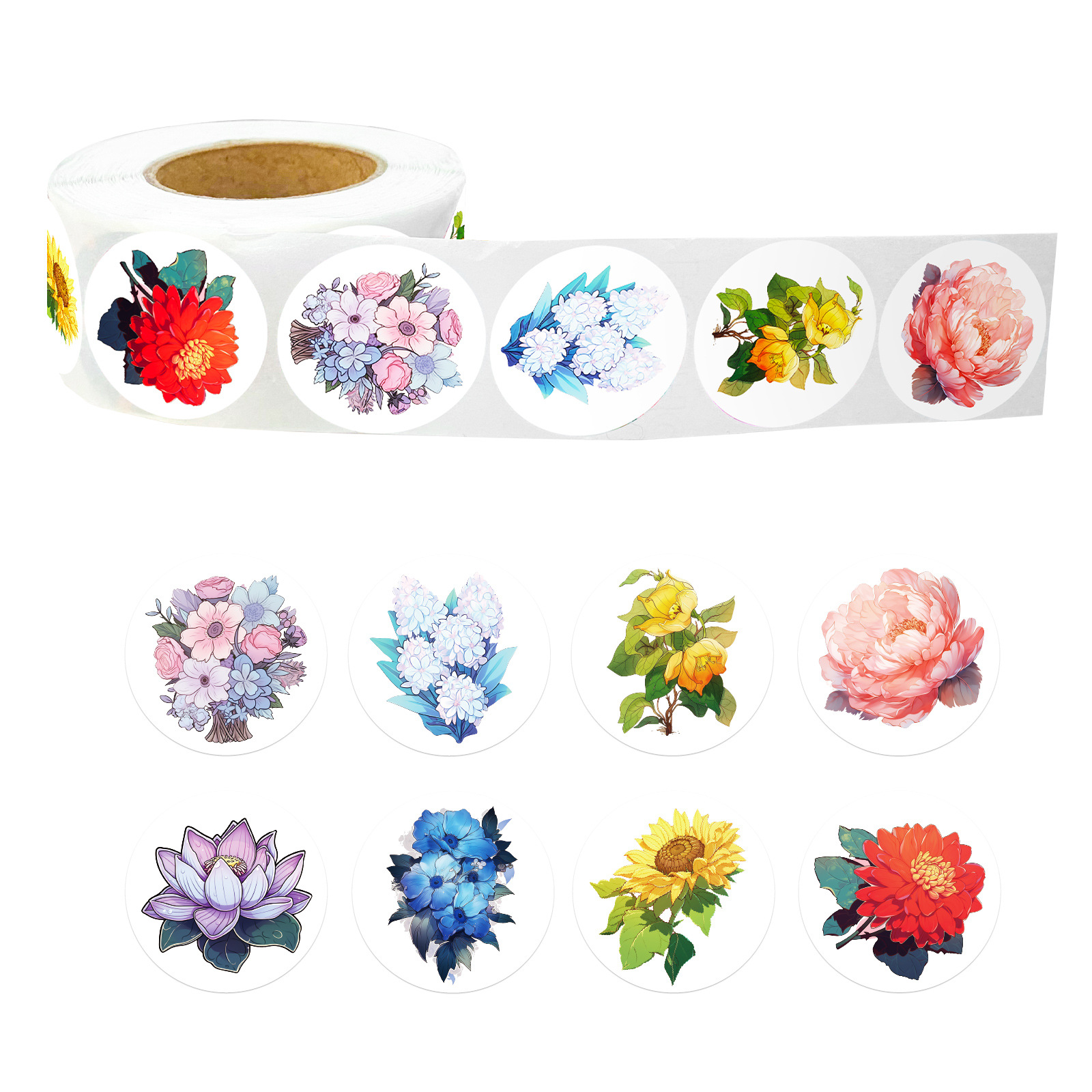500 시트/롤 아름다운 꽃 스티커 롤 국경 어린이 보상 스티커 롤 식품 포장 밀봉 스티커