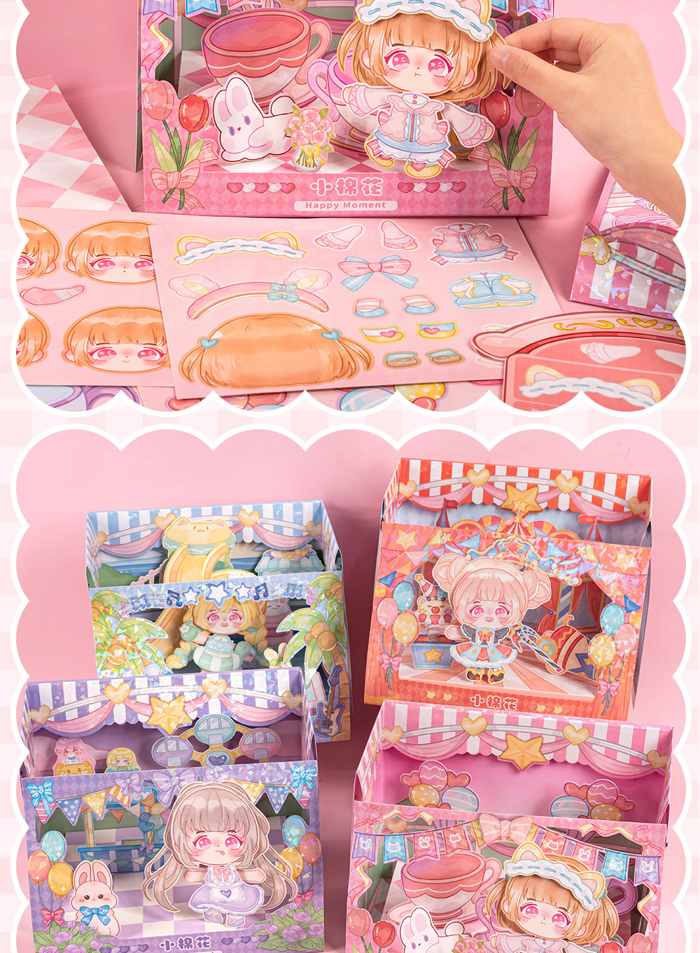 Yanshe 창조적 인 어린이 종이 장난감 수제 장면 생산 조용한 책 만화 공주 원피스 인형 스티커 책
