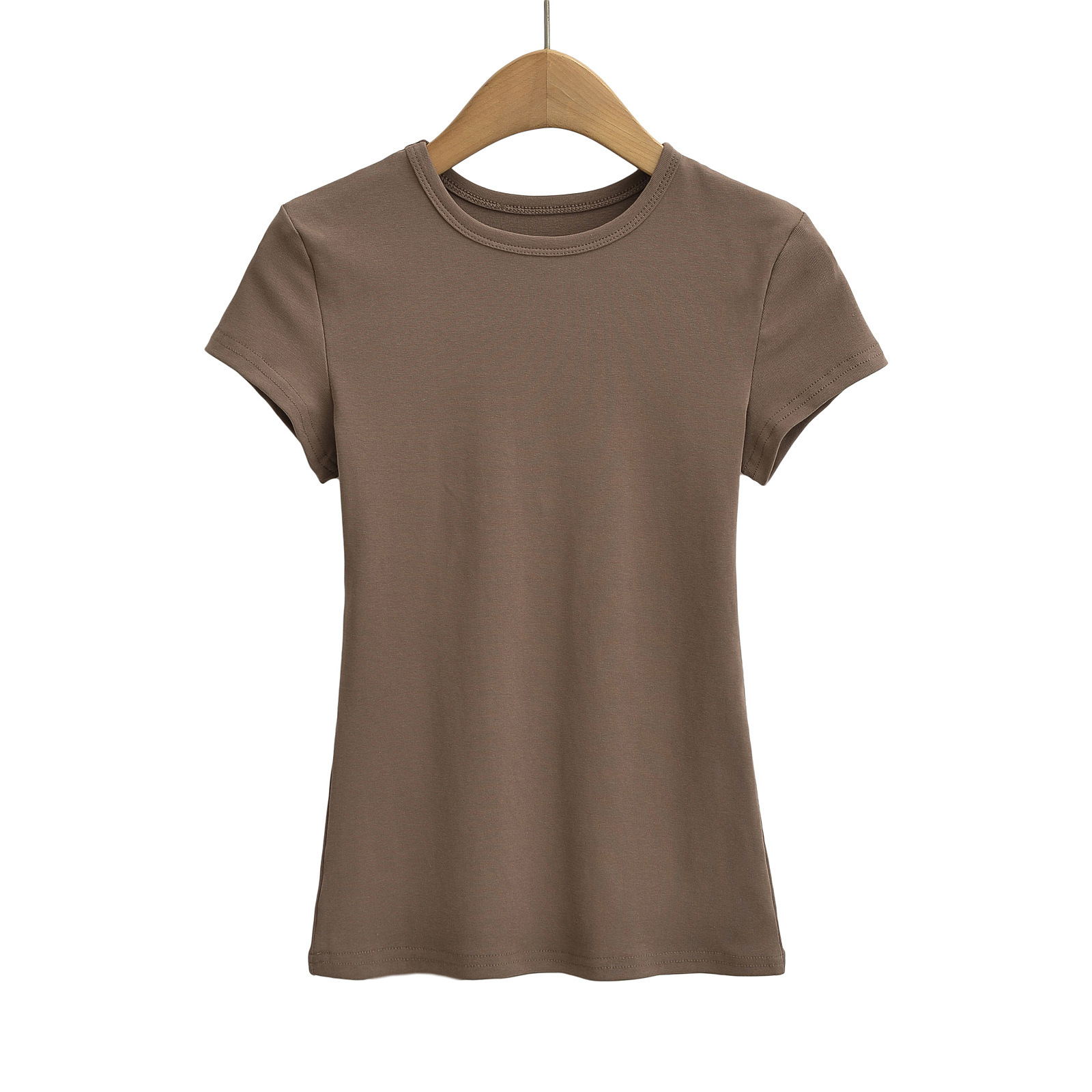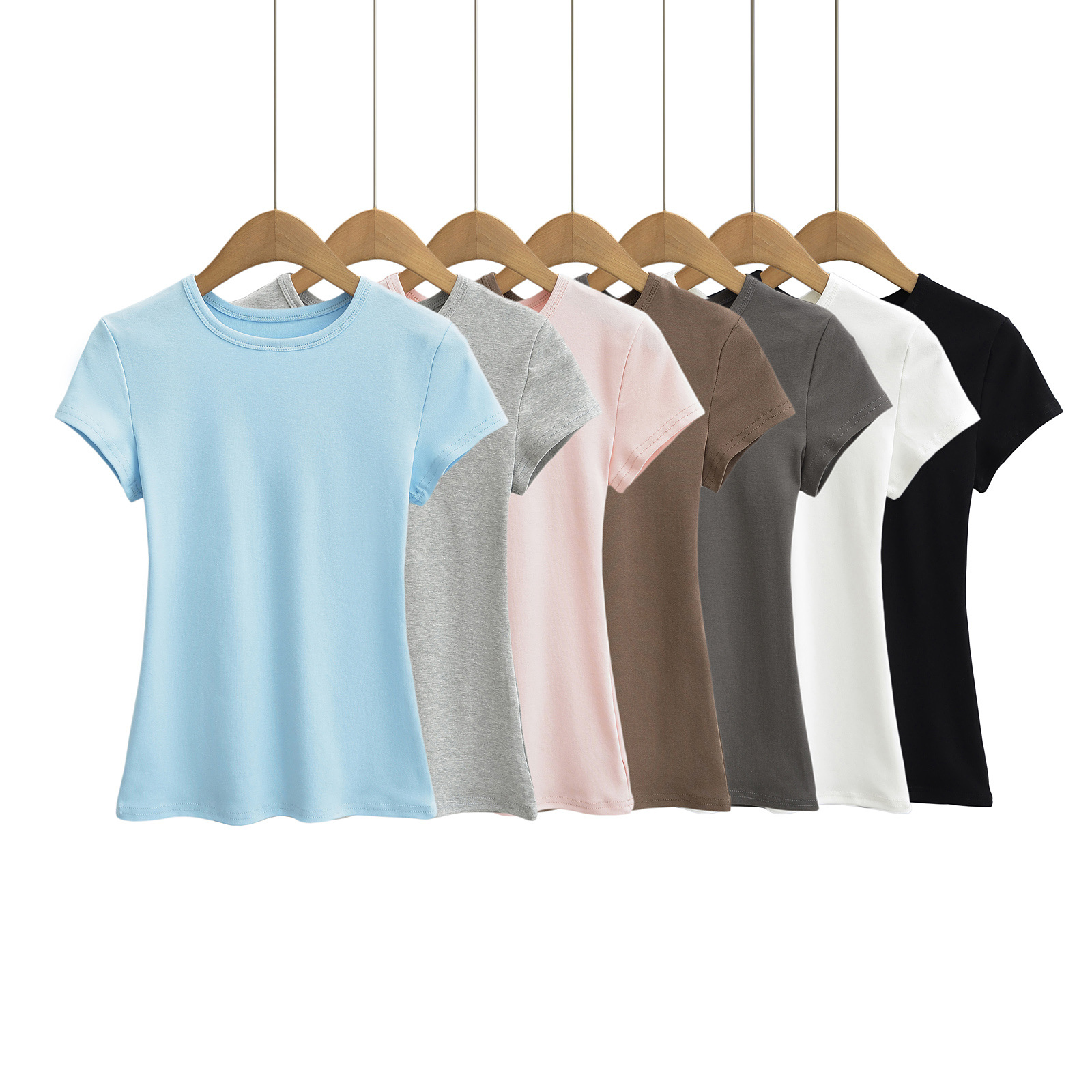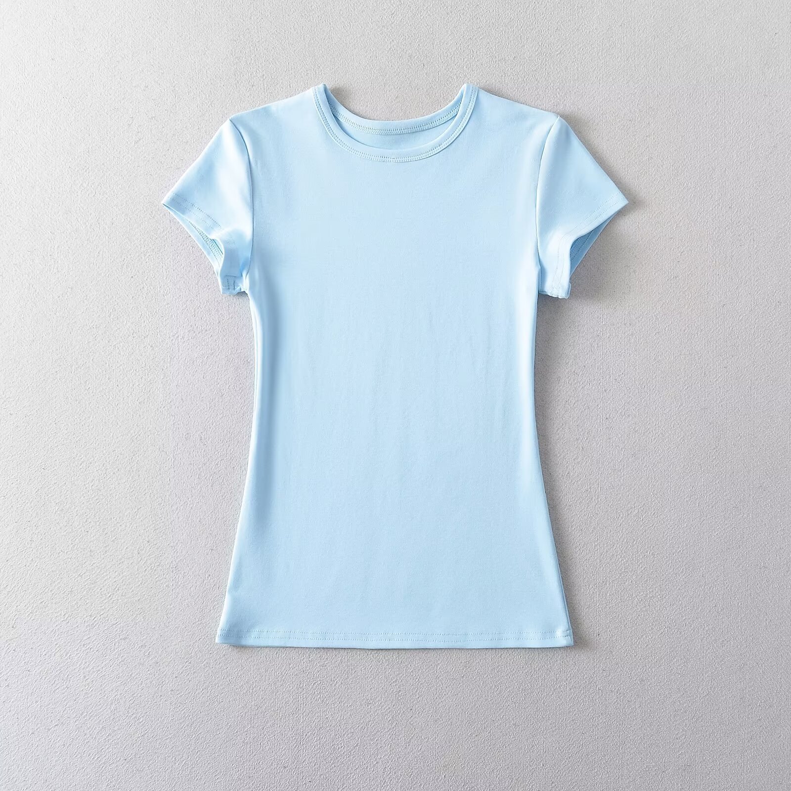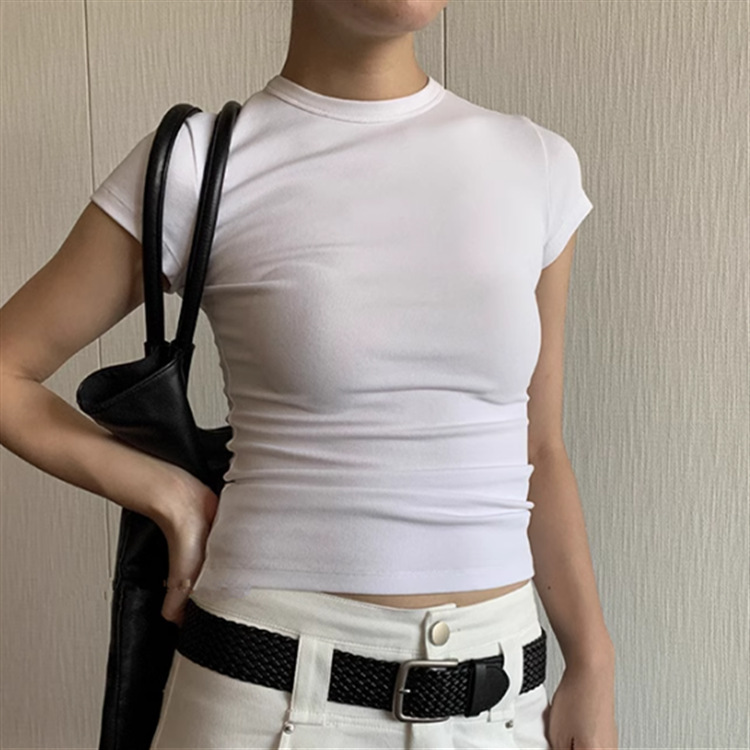 카다시안 여성용 반팔 티셔츠 2026 봄 여름 솔리드 컬러 슬림핏 라운드넥 슬리밍 베이스 스포츠 크로스보더 탑 도매스토어 가기