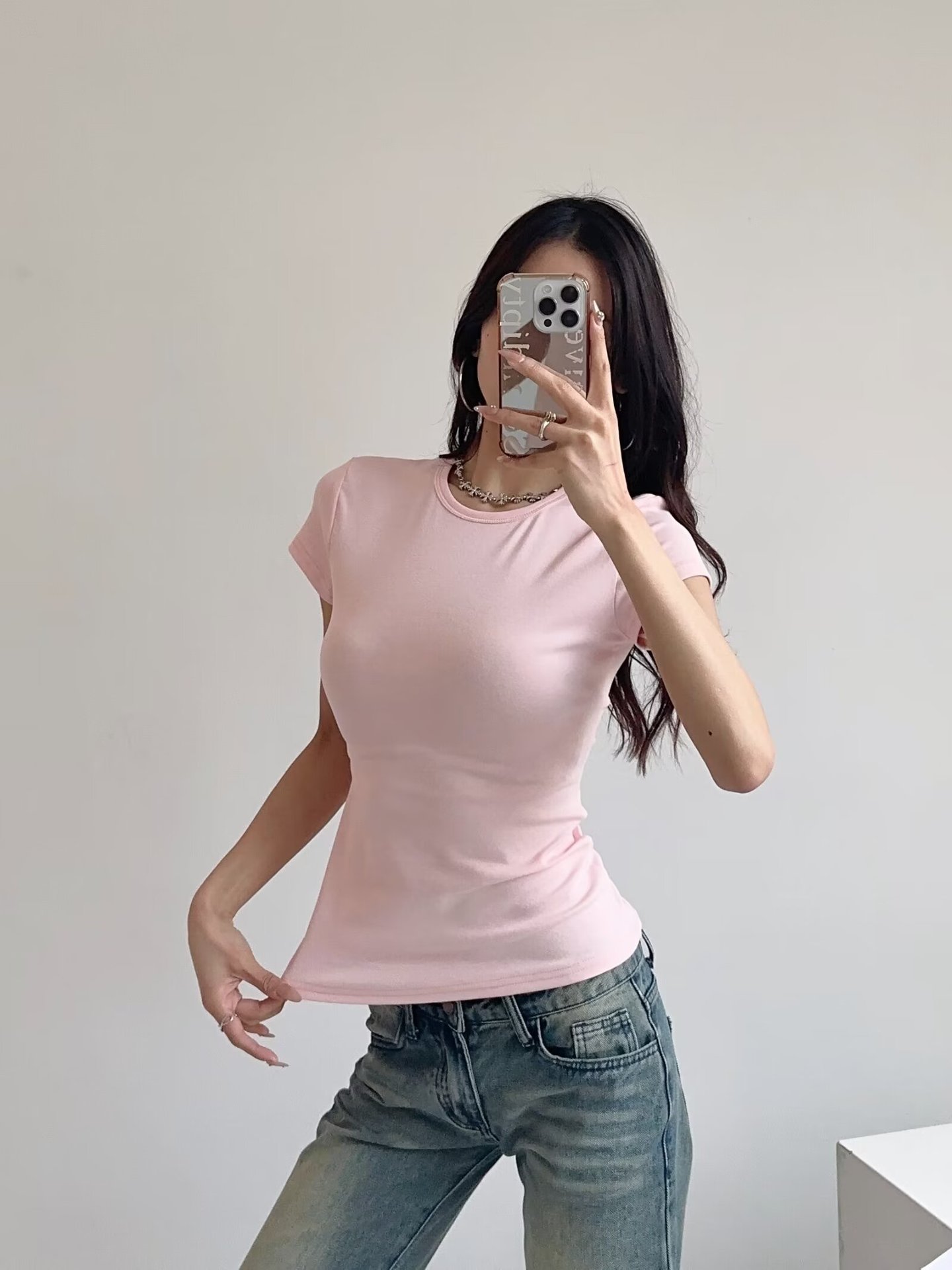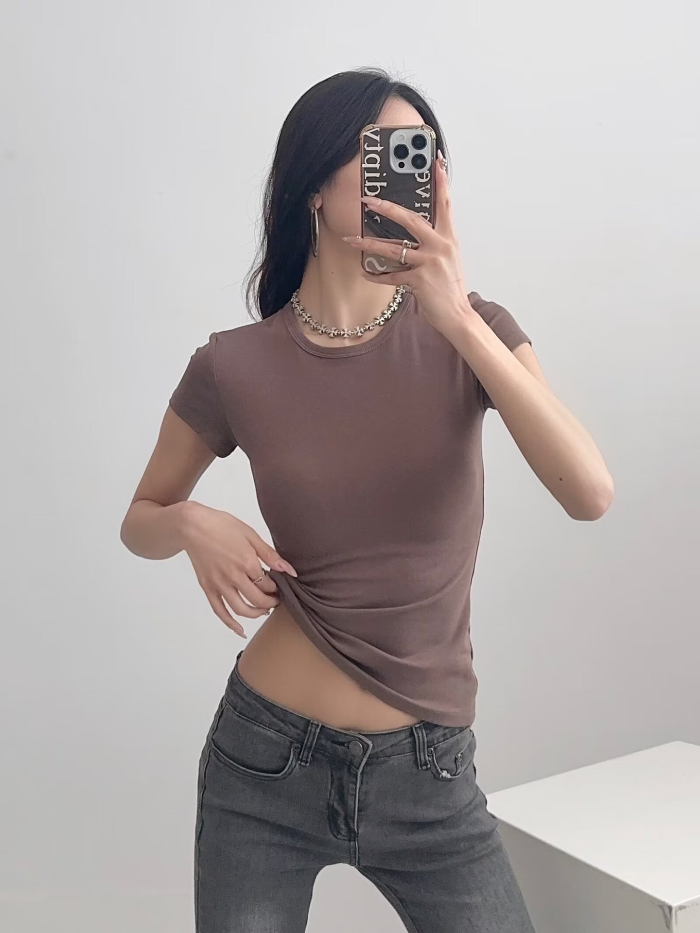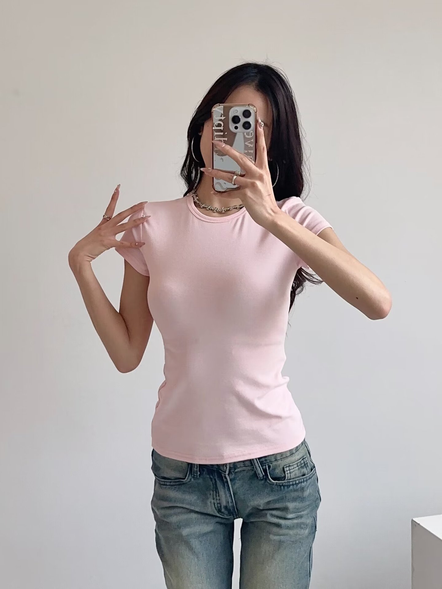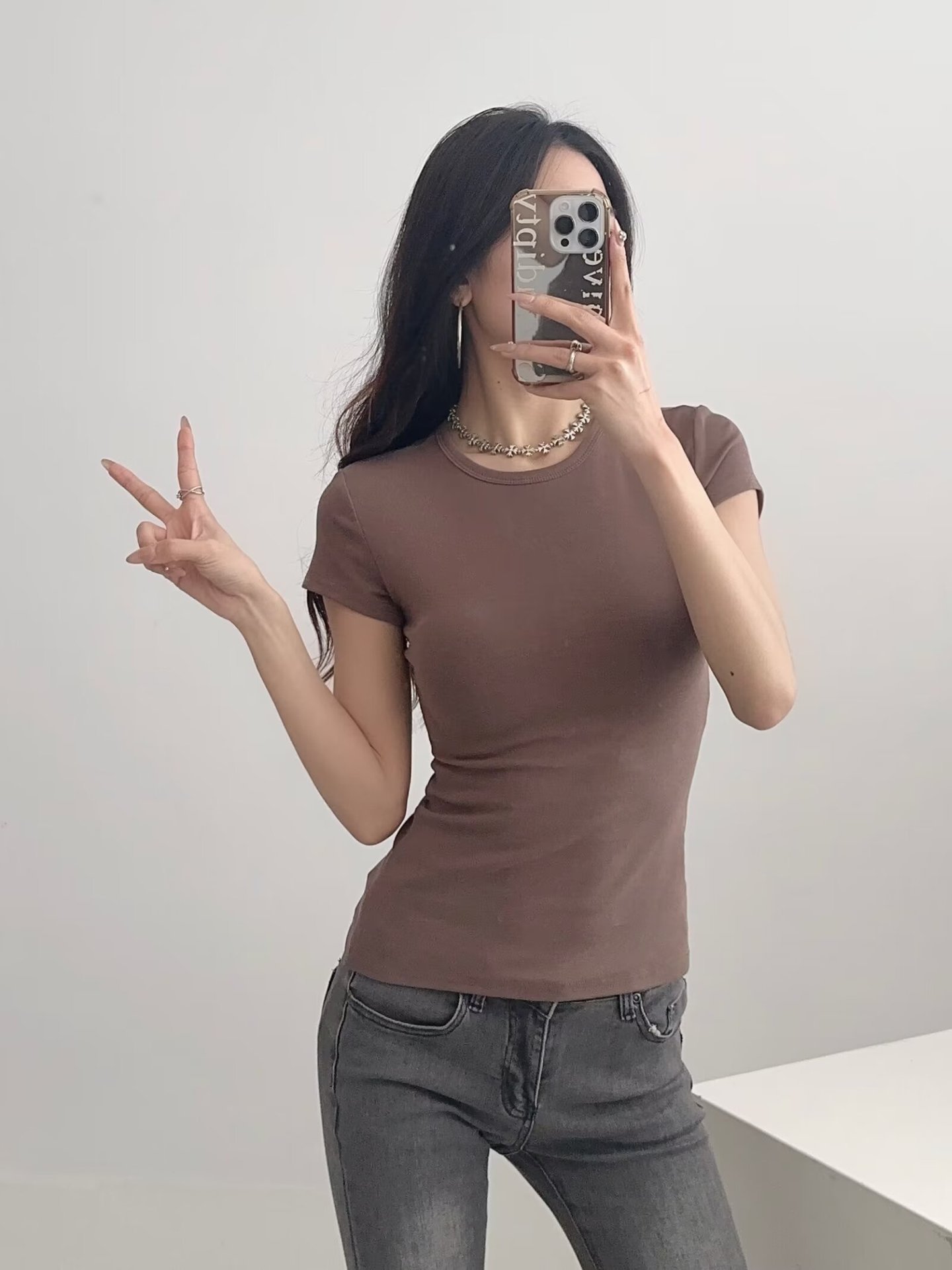 카다시안 여성용 반팔 티셔츠 2026 봄 여름 솔리드 컬러 슬림핏 라운드넥 슬리밍 베이스 스포츠 크로스보더 탑 도매스토어 가기