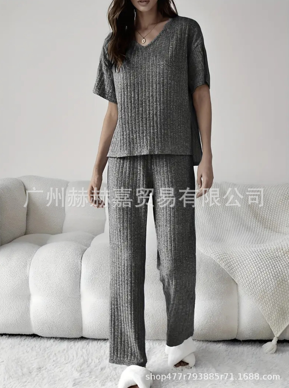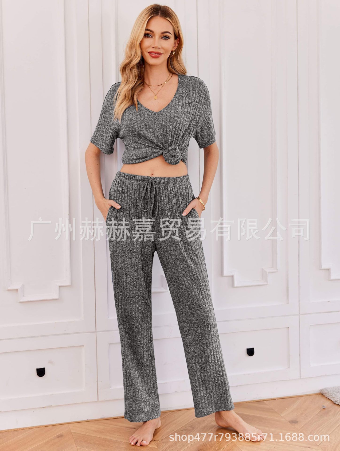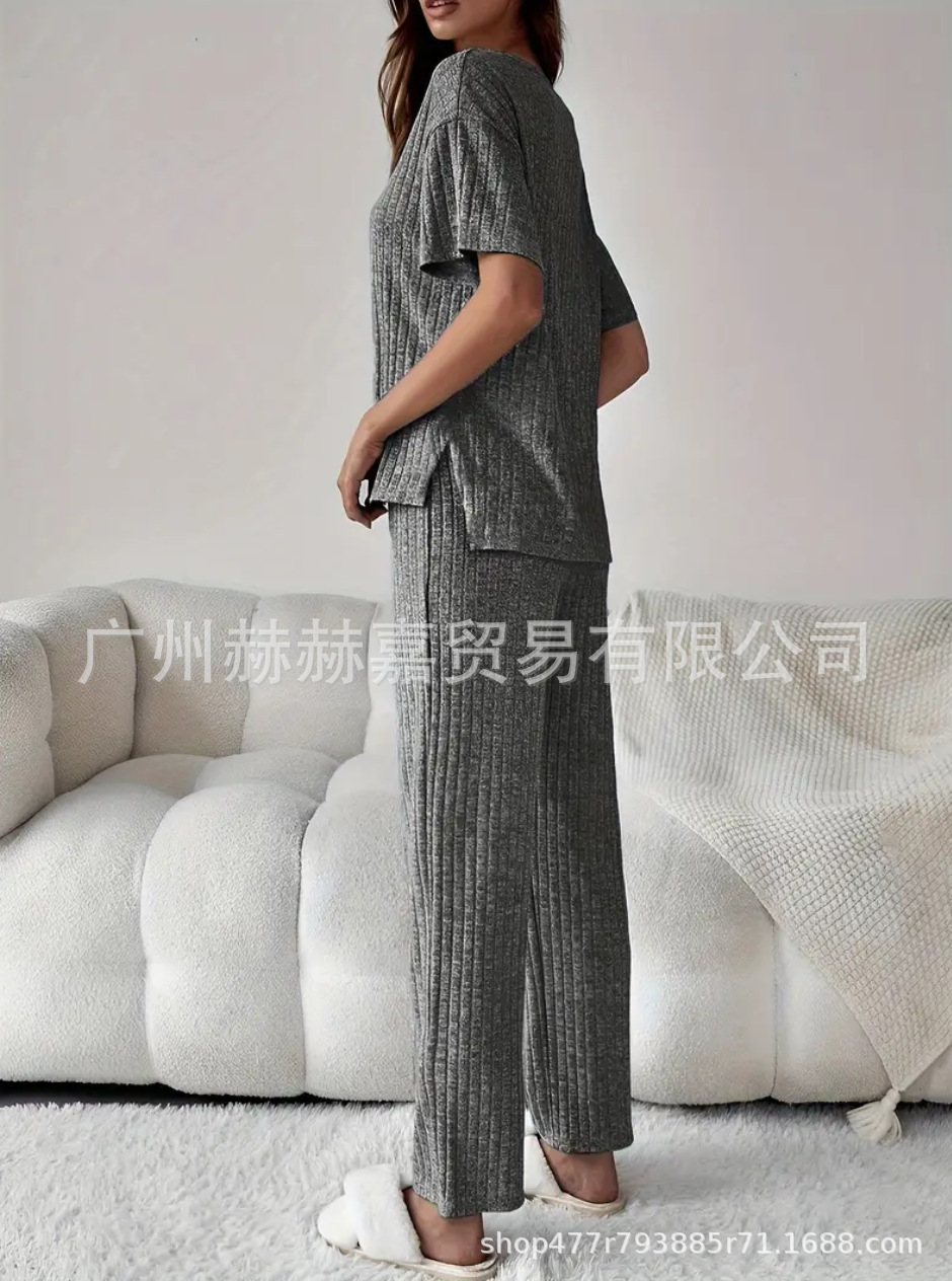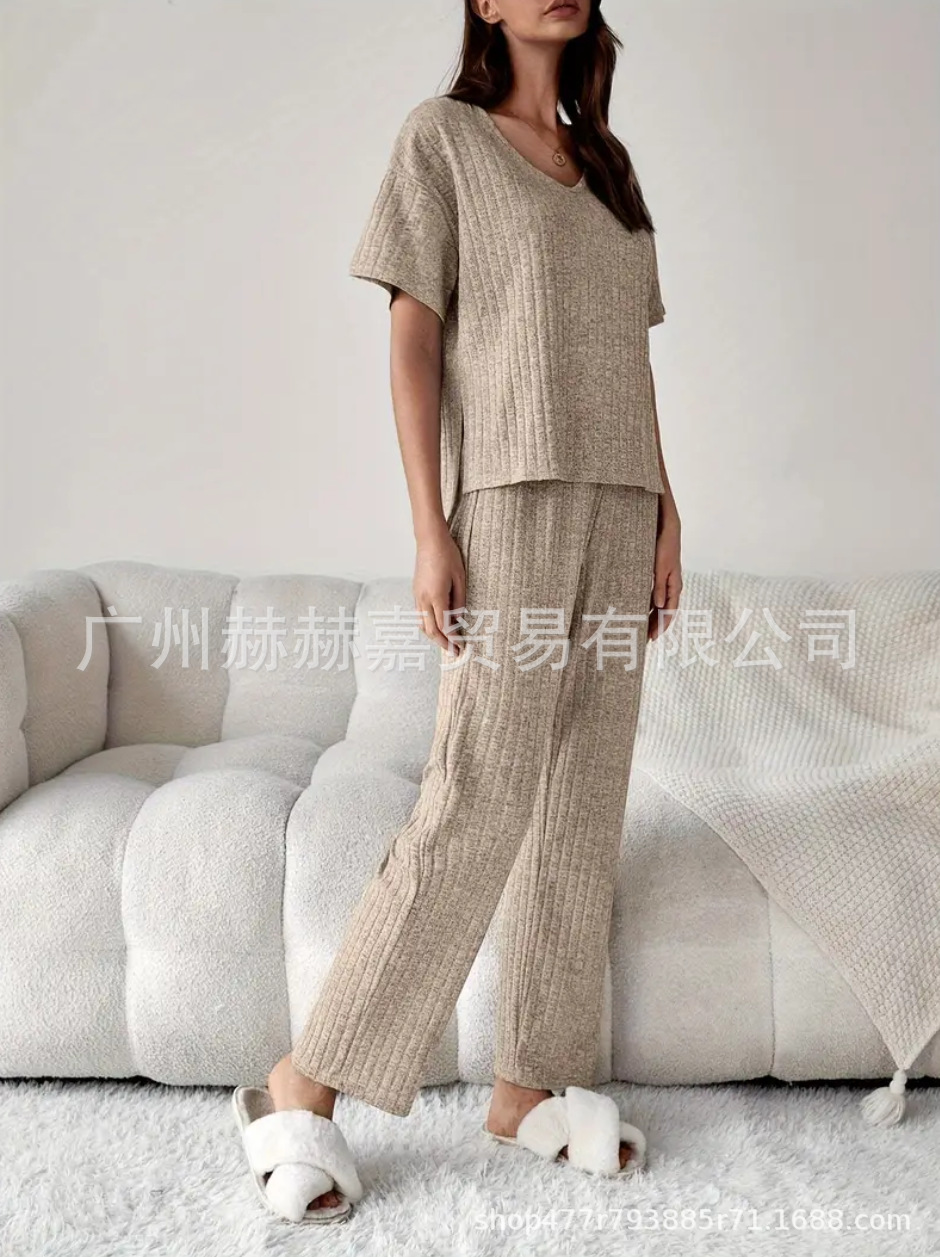 유럽과 미국의 여성 의류 2024 봄 아마존 핫 세일 긴 소매 단색 니트 브러시 드 피트 캐주얼 투피스 세트