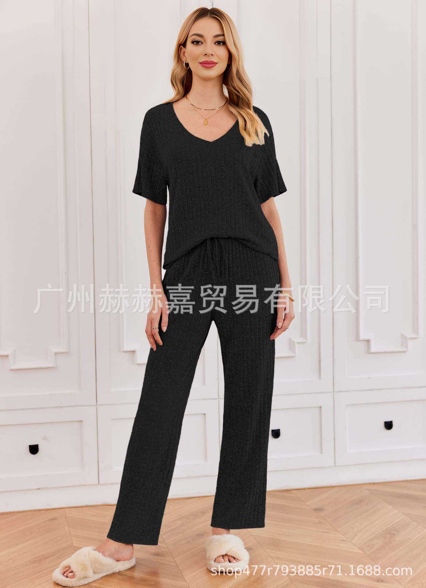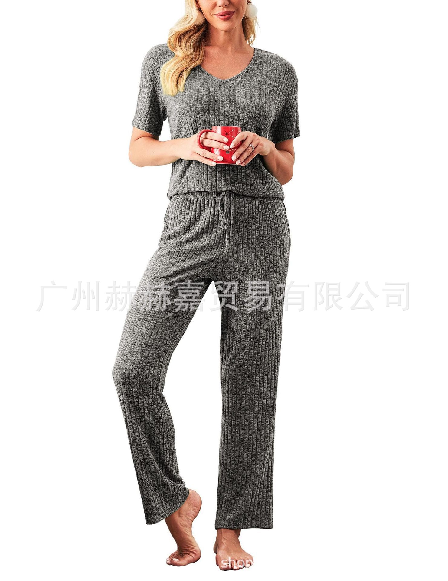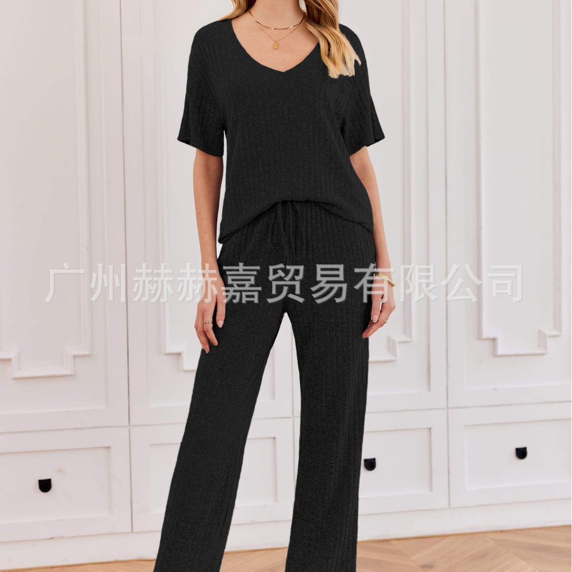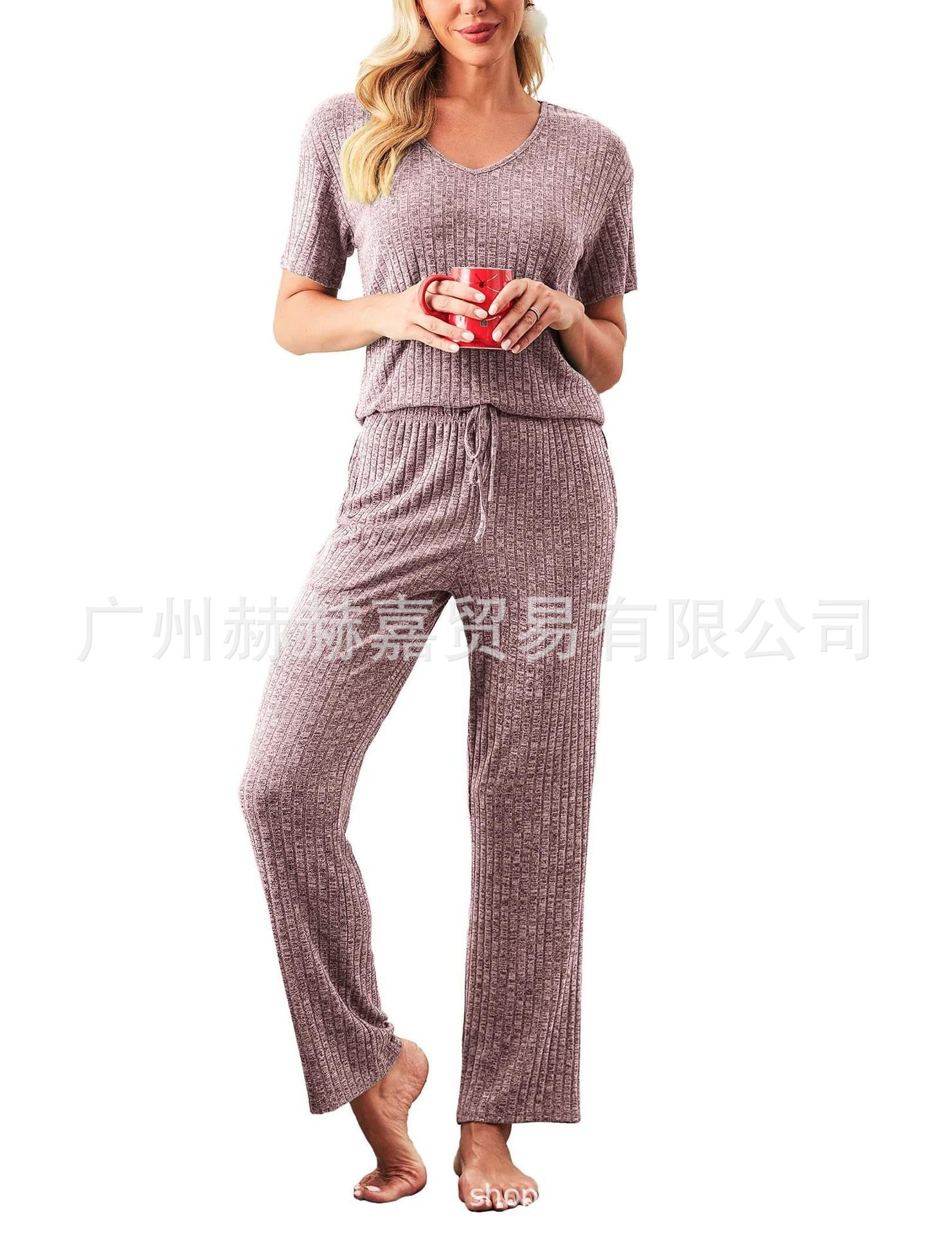 유럽과 미국의 여성 의류 2024 봄 아마존 핫 세일 긴 소매 단색 니트 브러시 드 피트 캐주얼 투피스 세트