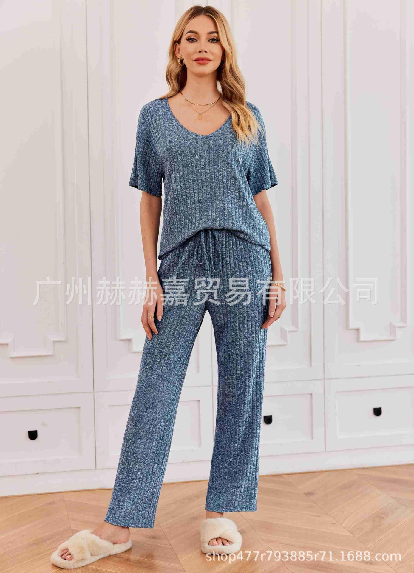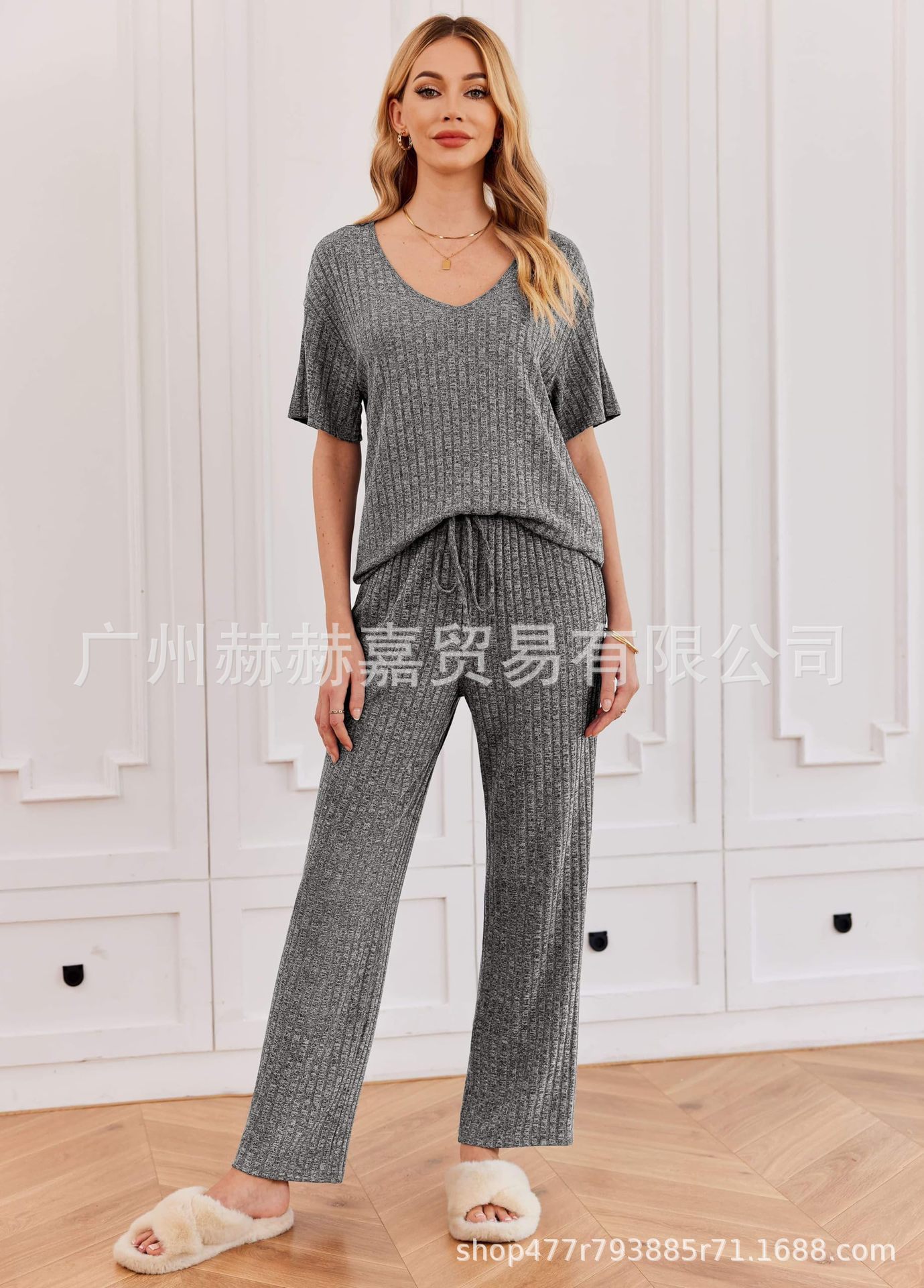 유럽과 미국의 여성 의류 2024 봄 아마존 핫 세일 긴 소매 단색 니트 브러시 드 피트 캐주얼 투피스 세트스토어 가기