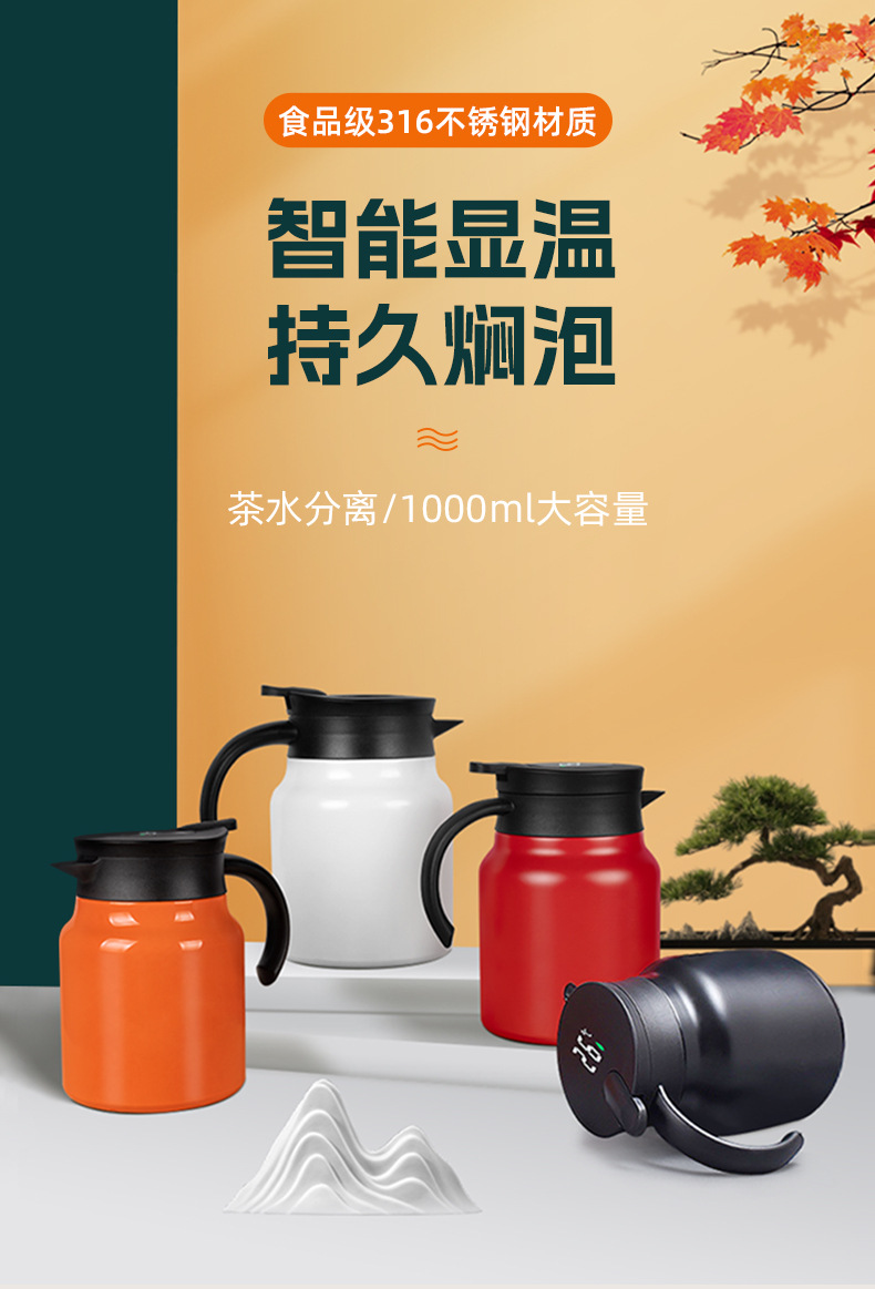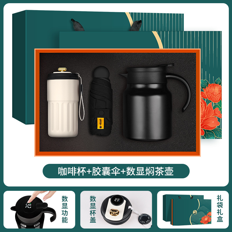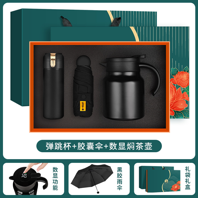 • 검은 스튜 찻주전자 + 디지털 디스플레이 바운스 컵 + 캡슐 우산