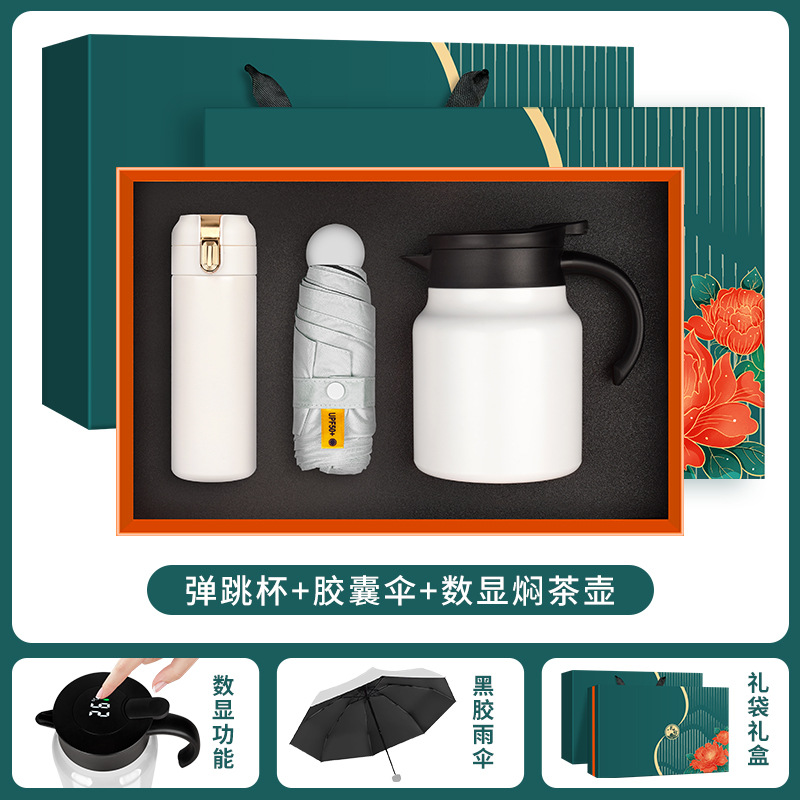 • 흰색 스튜 찻주전자 + 디지털 디스플레이 바운스 컵 + 캡슐 우산