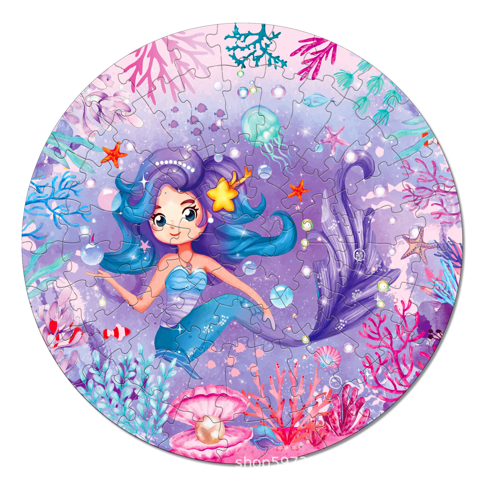 PD005 인어 수중 세계 라운드 퍼즐 종이 압축 퍼즐 어린이 장난감 퍼즐