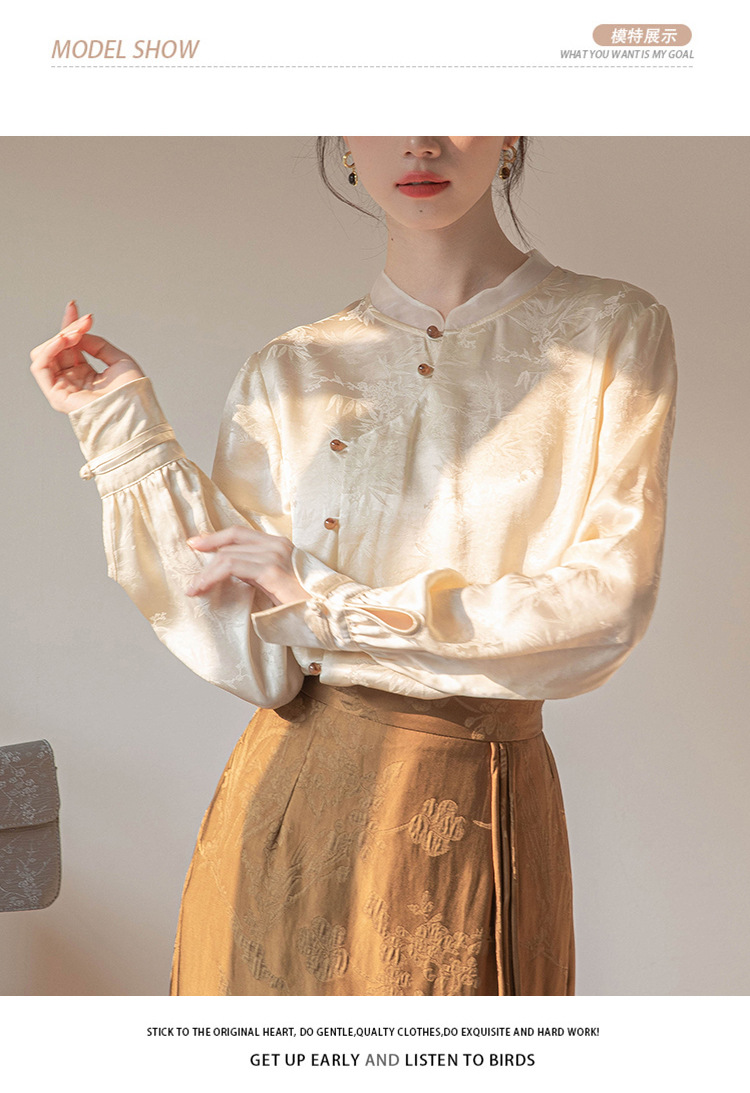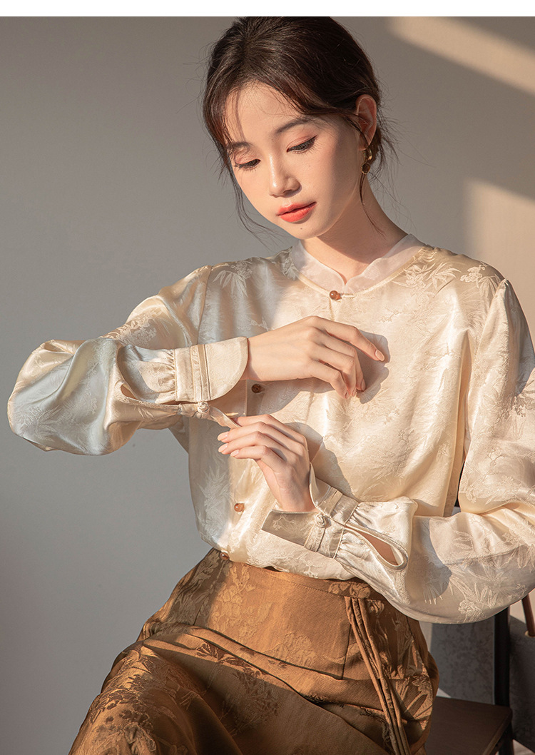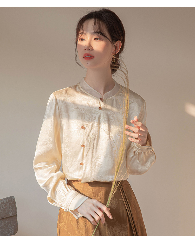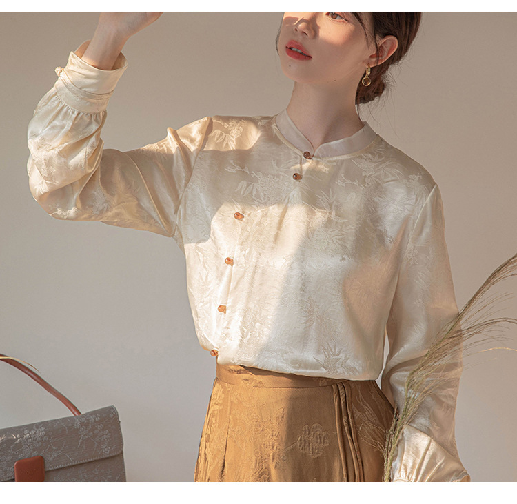 2024 진짜 새로운 봄 새로운 중국 긴팔 셔츠 여성 빛 국가 스타일 셔츠스토어 가기