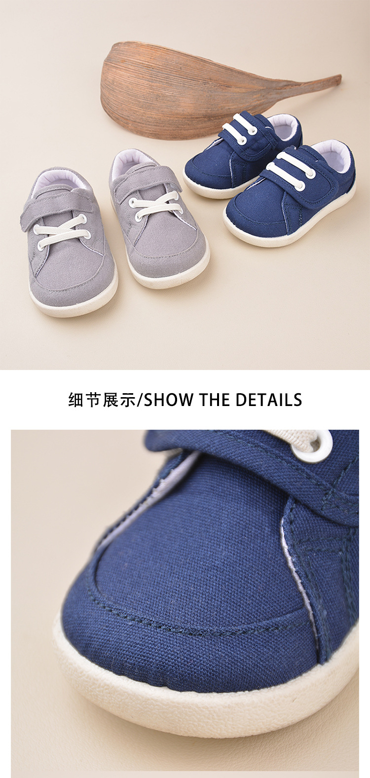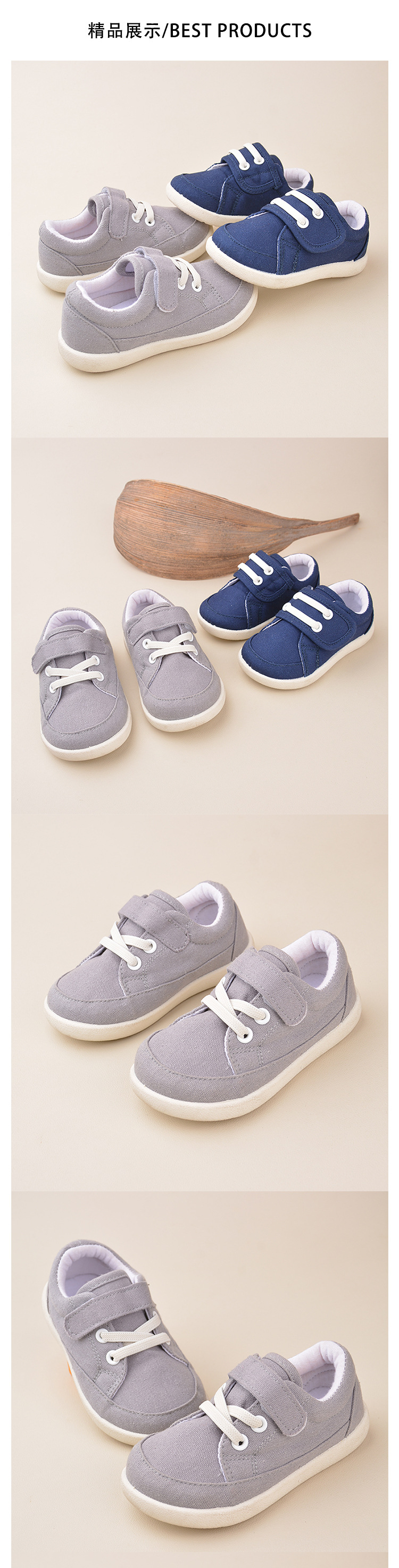 春季新款男孩魔术贴帆布鞋休闲软底宝宝幼儿园室内鞋