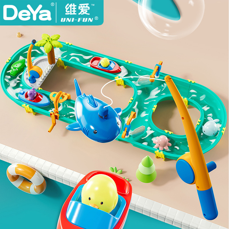 B.DUCK 작은 노란색 오리 전기 물 래프팅 낚시 플레이트 대화 형 부모-자식 물 수영 떠 다니는 장난감 물 모험스토어 가기