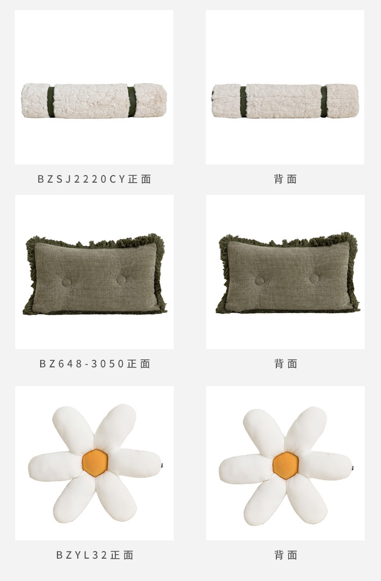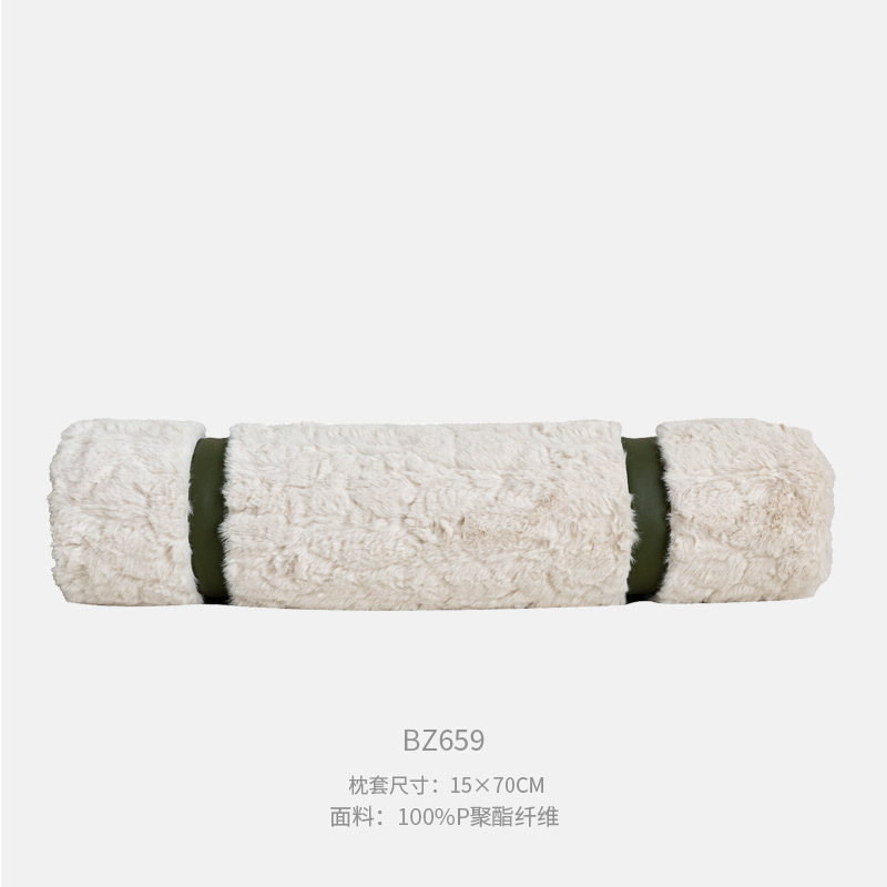 • 15x70cm 스펀지 코어 화이트 클라우드 무늬 털 + 녹색 가죽 원형 쿠션