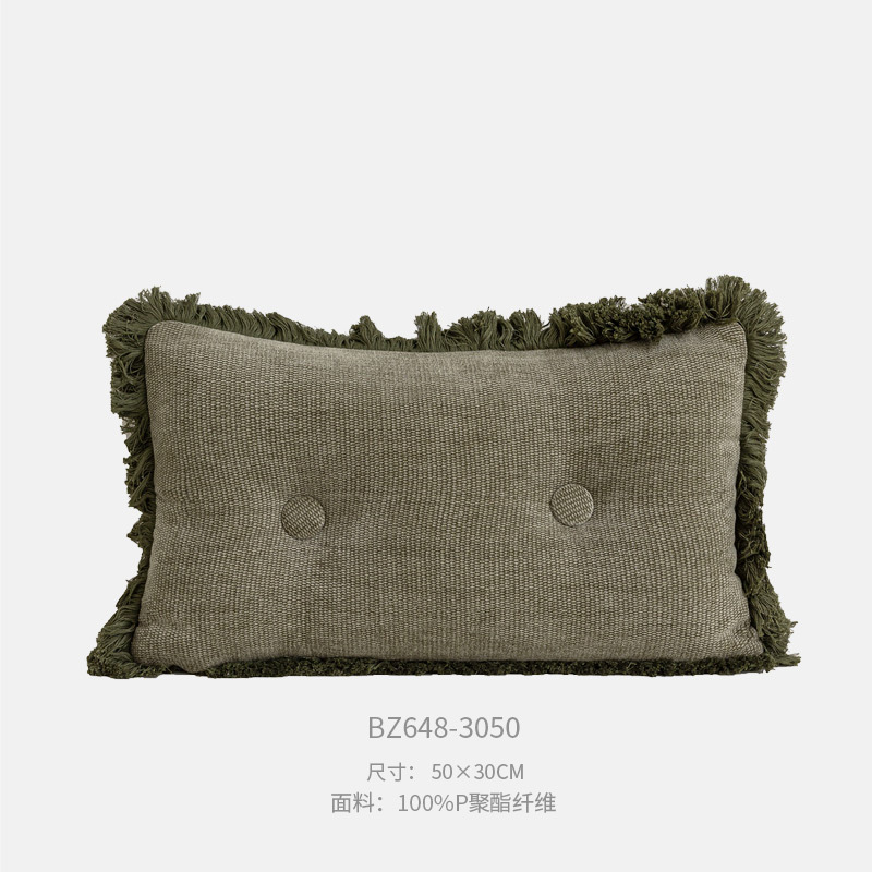 • 30x50cm 깃털 벨벳 코어 그린 태슬 풀 버튼 허리 베개