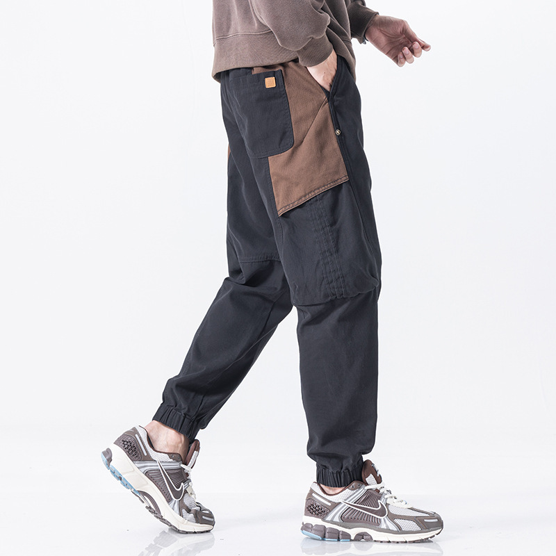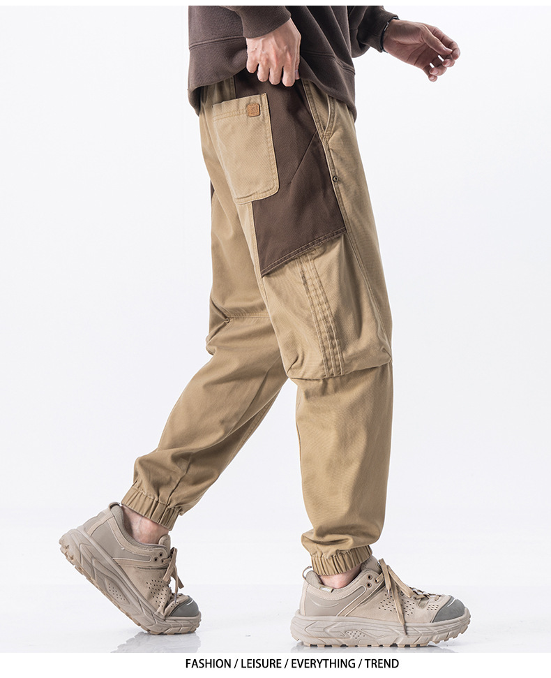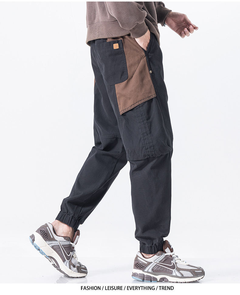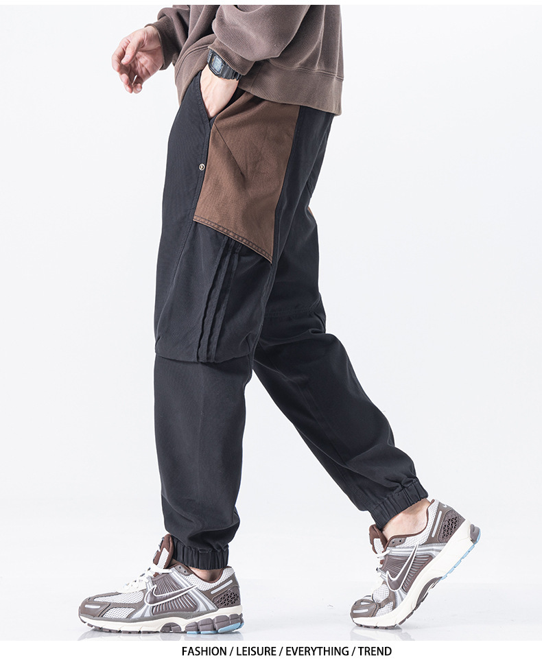 미국 복고풍 바지 남성 패션 브랜드 남성 발목 묶인 바지 가을 2023 새로운 스티칭 바지 남성 플러스 사이즈