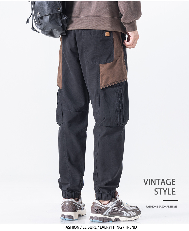 미국 복고풍 바지 남성 패션 브랜드 남성 발목 묶인 바지 가을 2023 새로운 스티칭 바지 남성 플러스 사이즈스토어 가기