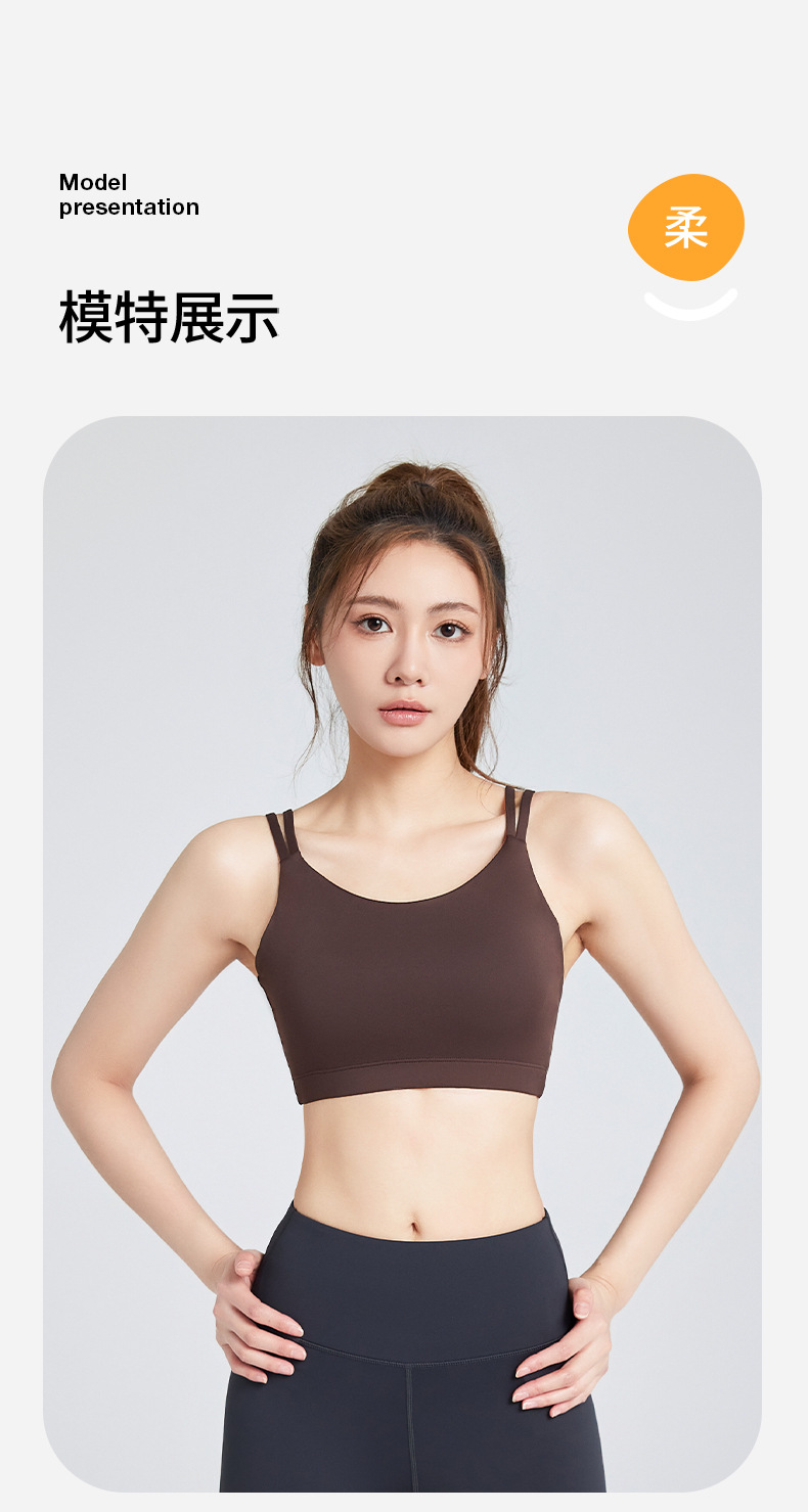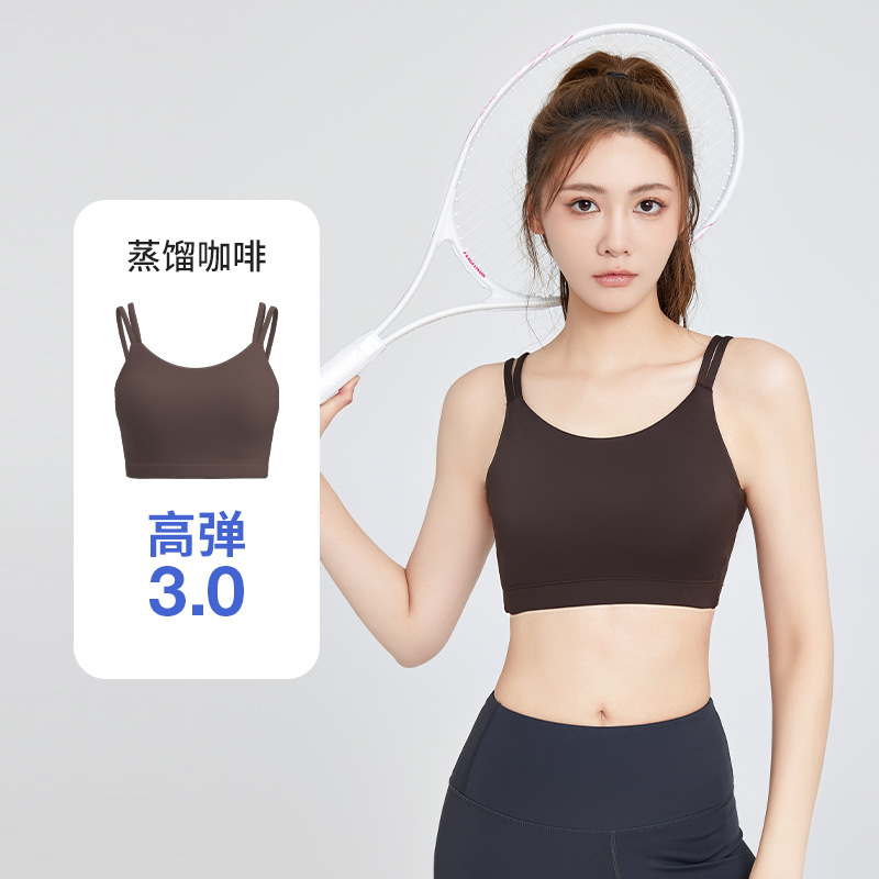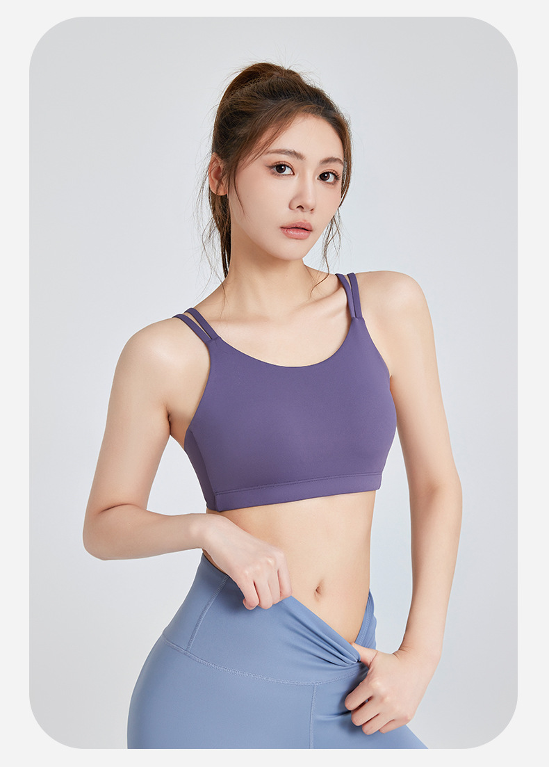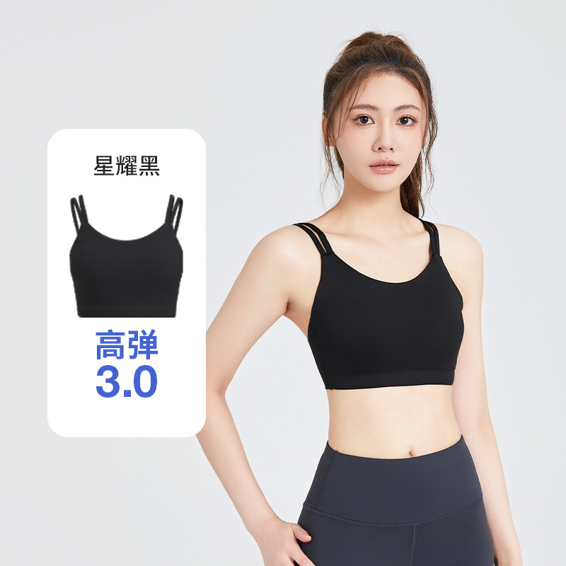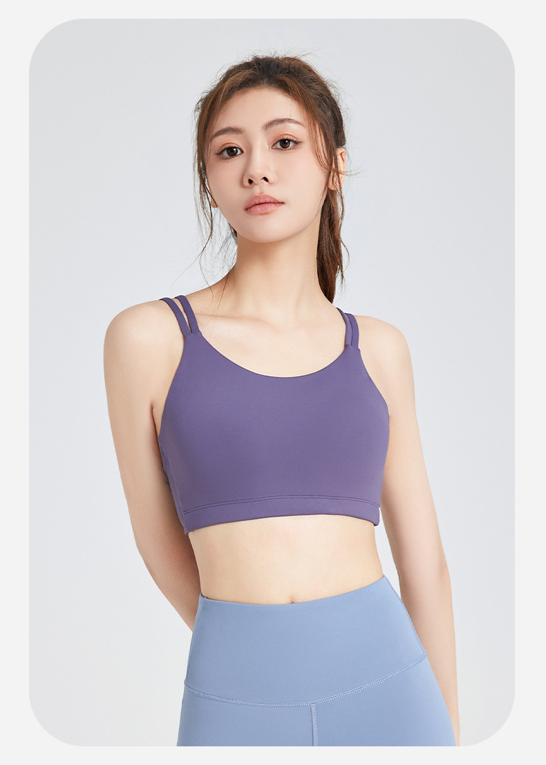 Juyitang 고탄성 더블 숄더 얇은 스트랩 요가 브라 충격 방지 및 아름다운 등 올인원 스포츠 브라