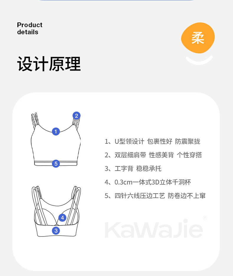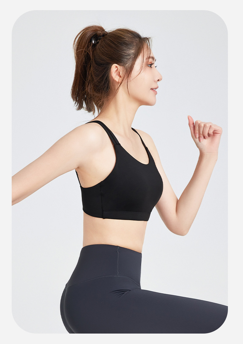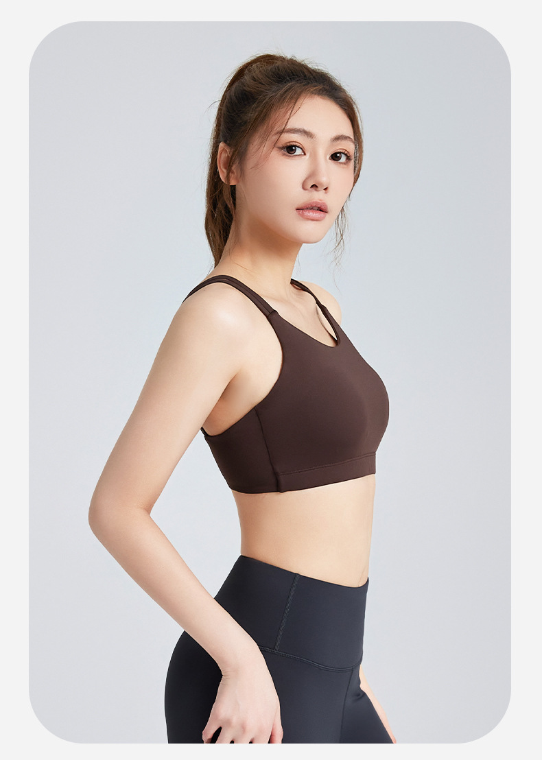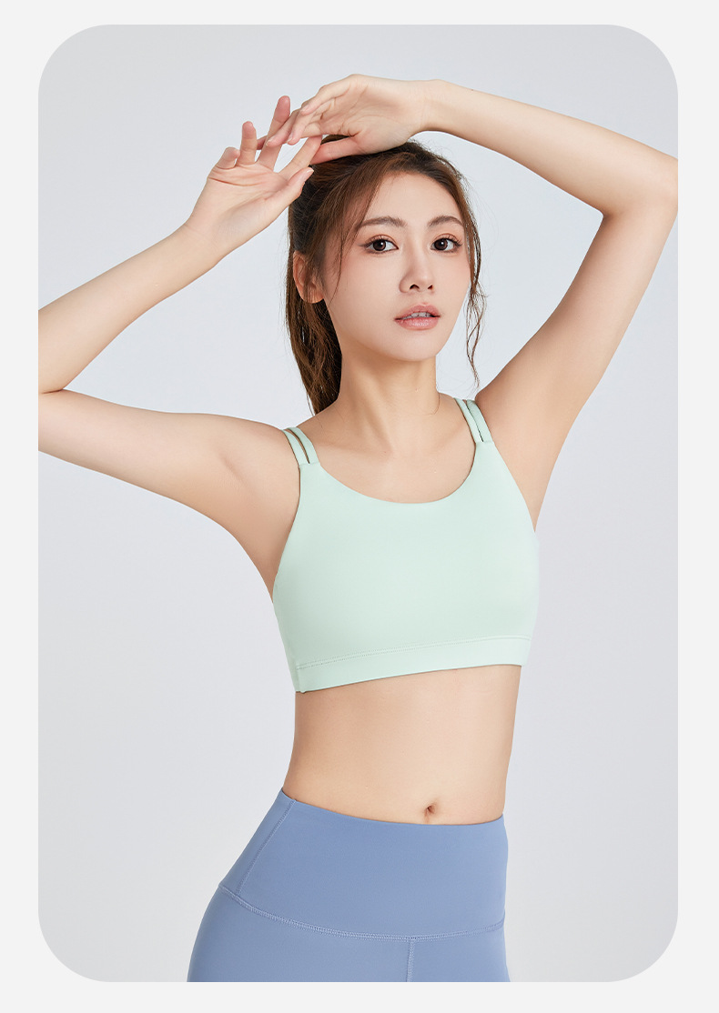 Juyitang 고탄성 더블 숄더 얇은 스트랩 요가 브라 충격 방지 및 아름다운 등 올인원 스포츠 브라