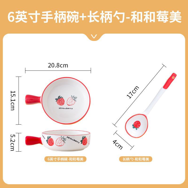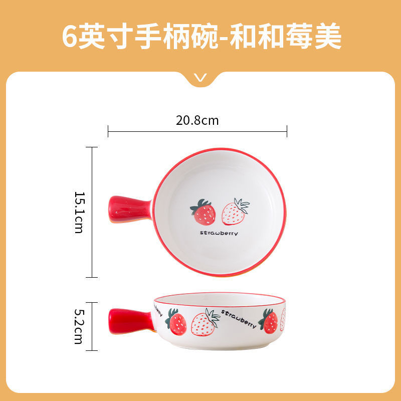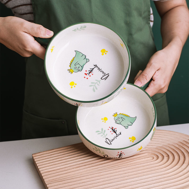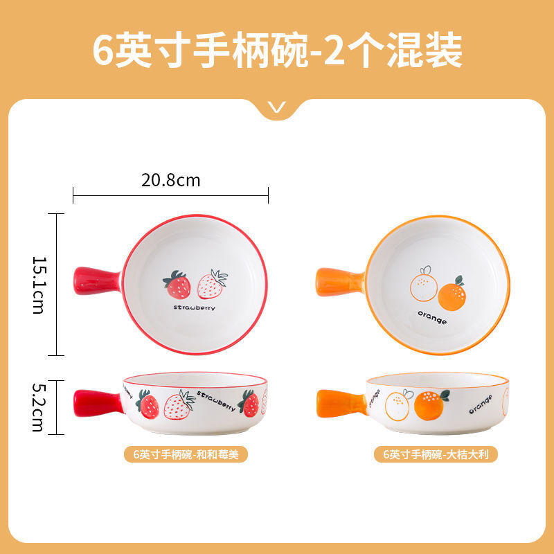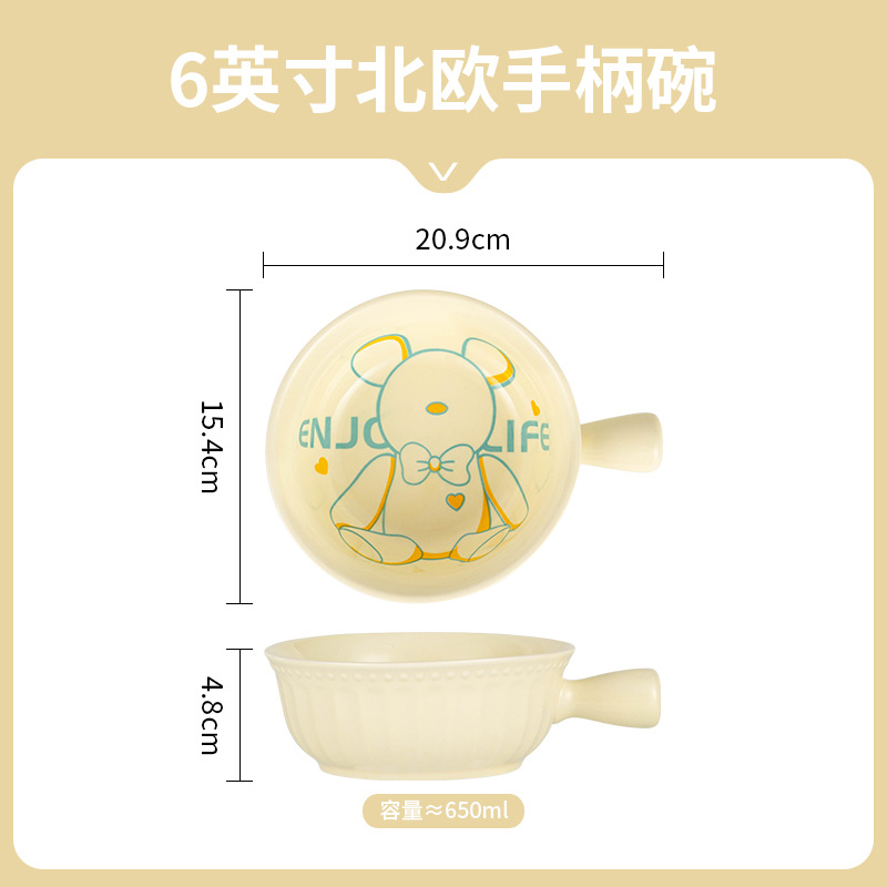 귀여운 세라믹 인스턴트 국수 그릇 손잡이 가정용 개인 식기 과일 샐러드 그릇 수프 그릇 접시 손잡이 그릇스토어 가기