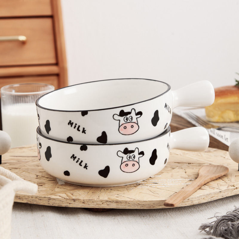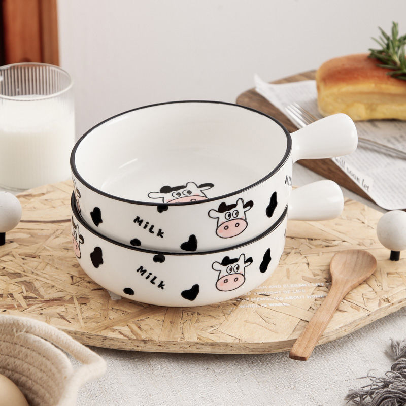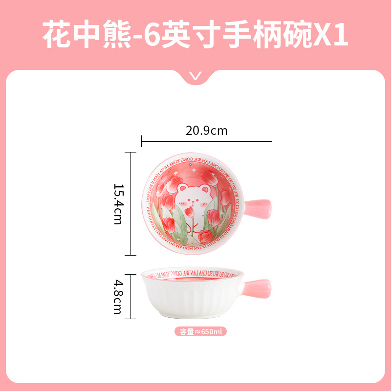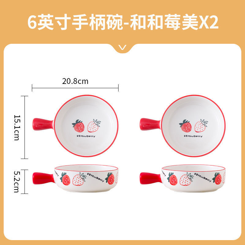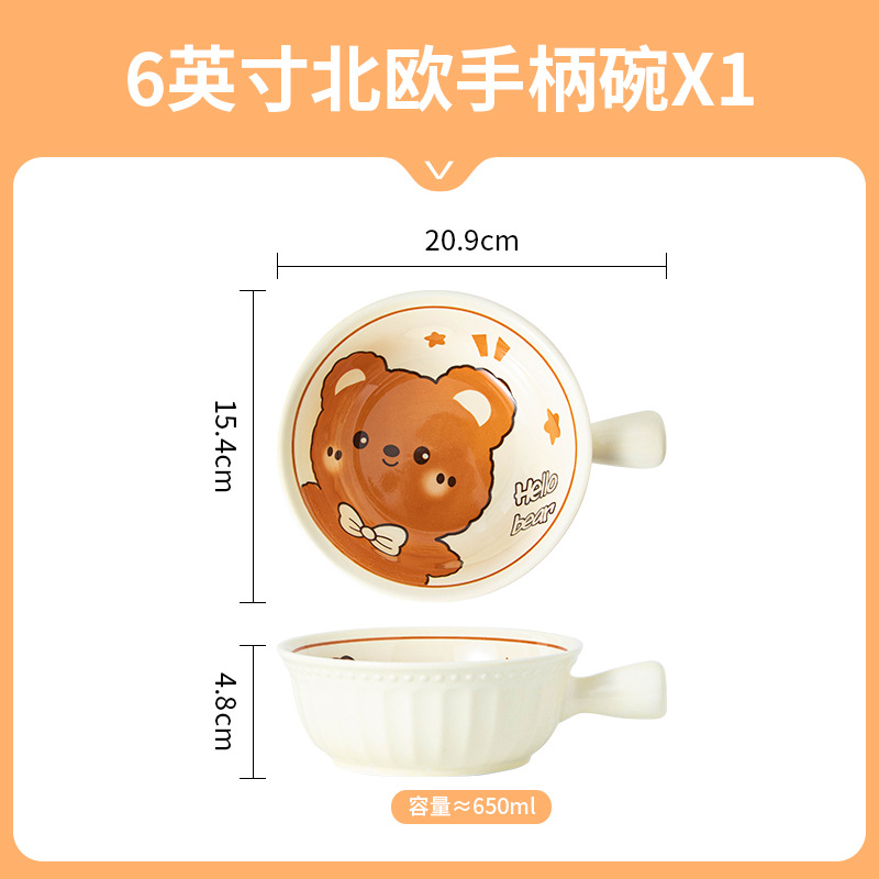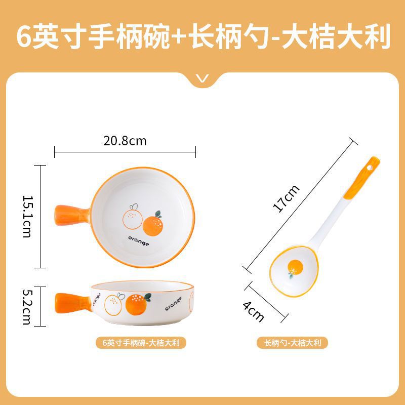 귀여운 세라믹 인스턴트 국수 그릇 손잡이 가정용 개인 식기 과일 샐러드 그릇 수프 그릇 접시 손잡이 그릇스토어 가기