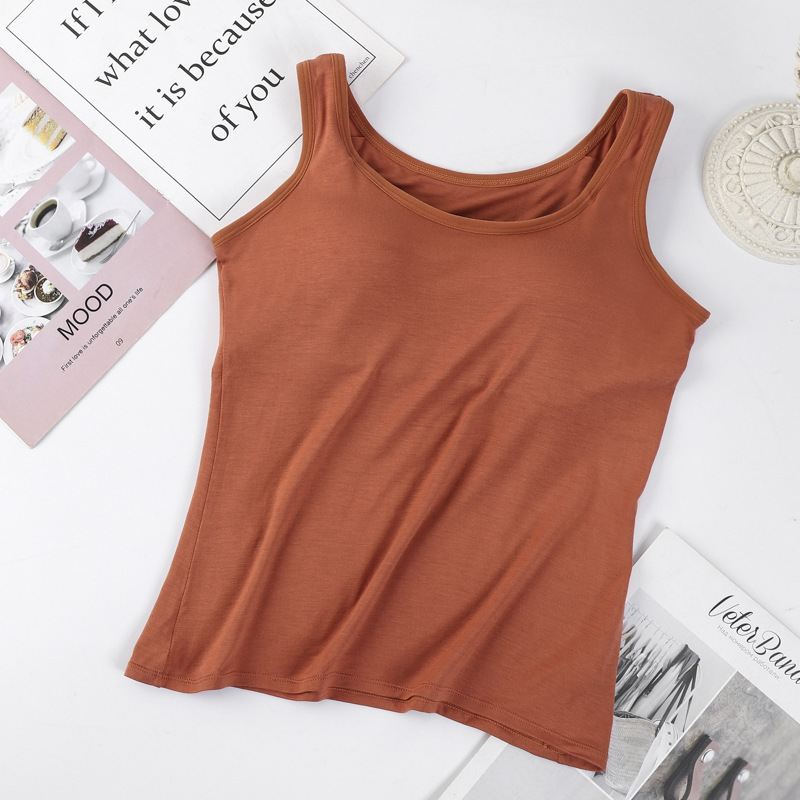 무선 모달 속옷 여성의 외부는 가슴 패드 원피스 푸시 업 노출 방지 브래지어와 긴 스포츠 조끼를 착용합니다.스토어 가기
