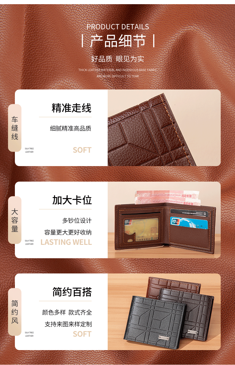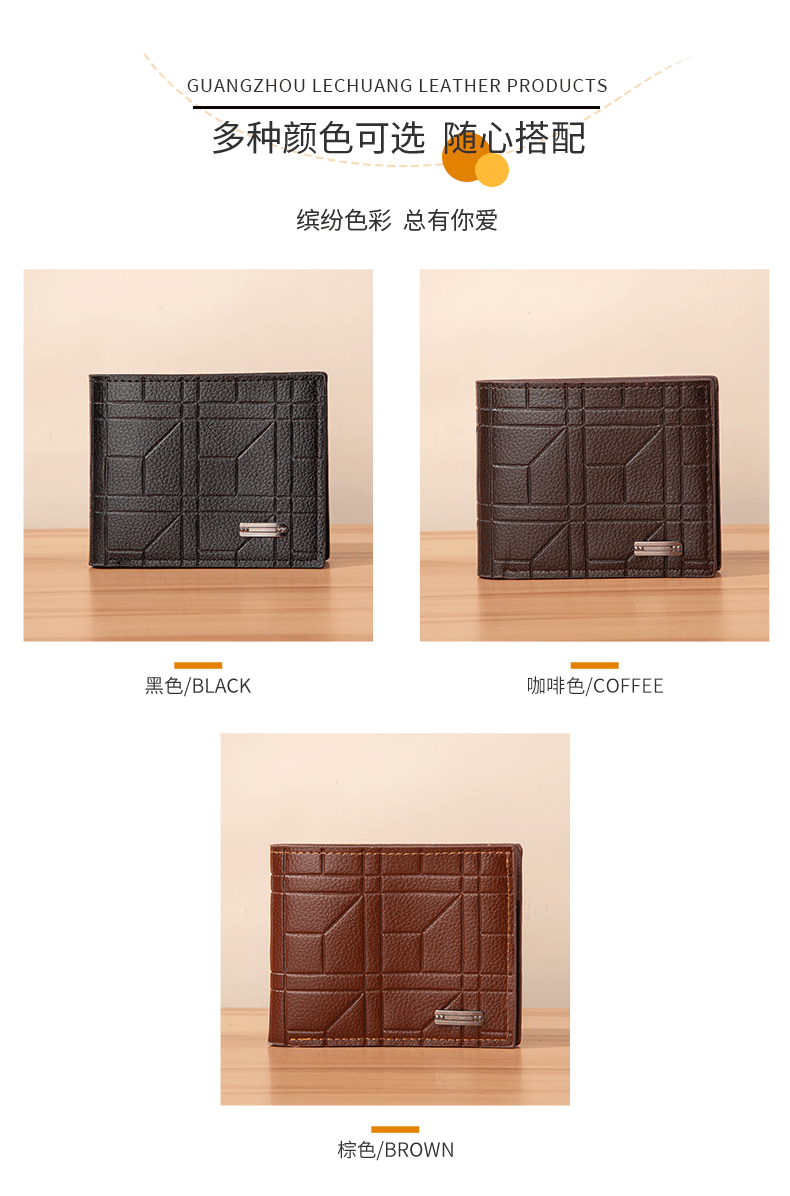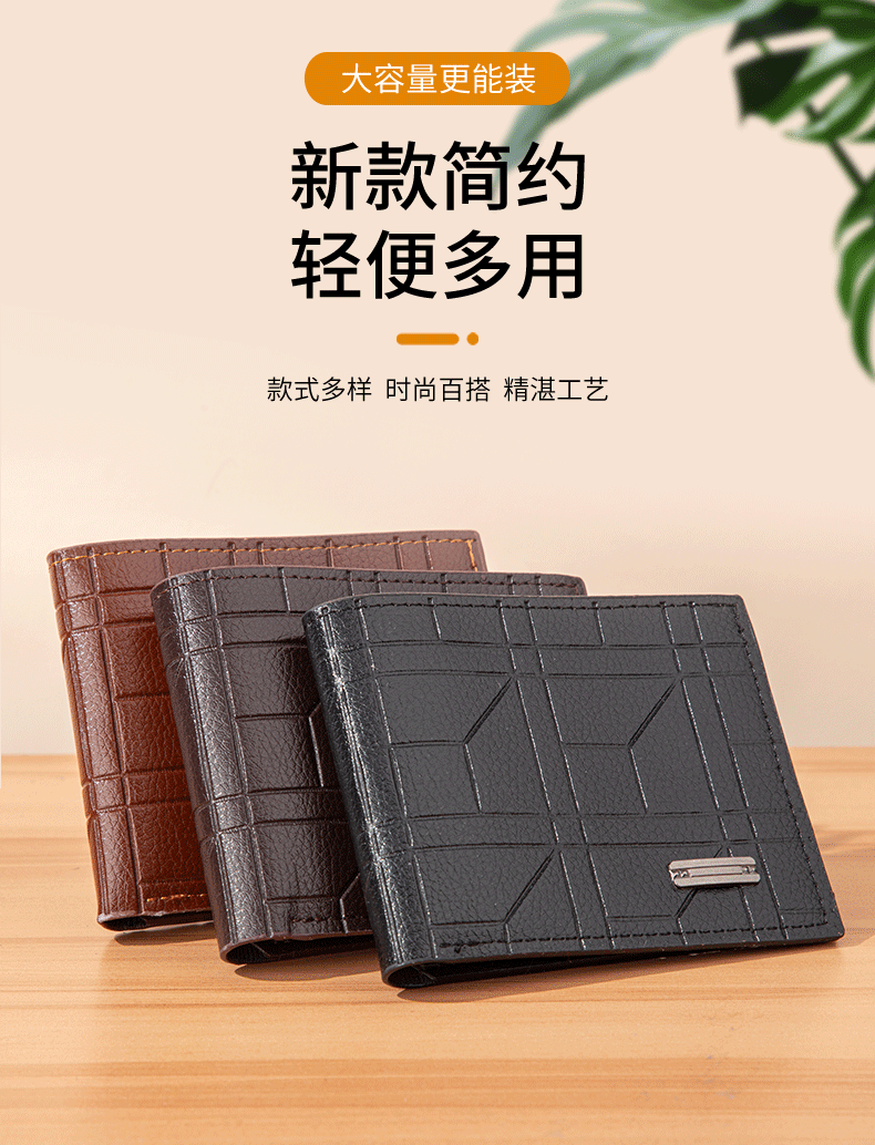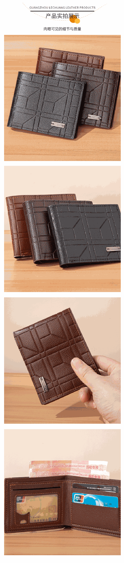 새로운 남성 지갑 남자의 짧은 지갑 청소년 패션 격자 무늬 수평 소프트 지갑 대용량 멀티 카드 지갑