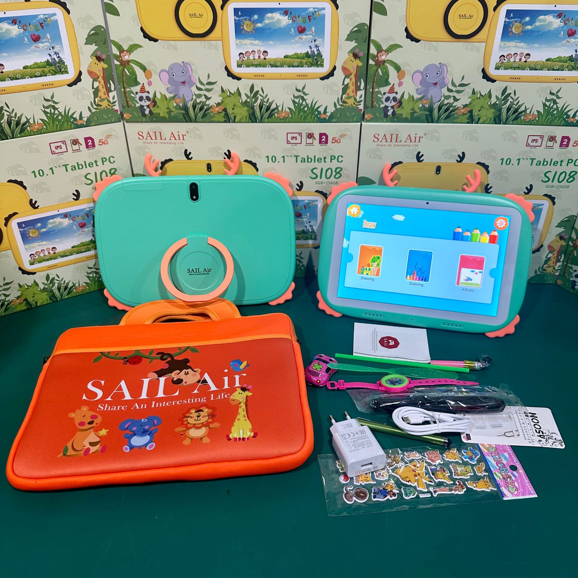 SAIL Air 品牌儿童平板电脑,是集游戏娱乐,学习早教的一款智能平板电脑。产品定位为出口专供,不适合国内自用。并带有各种热门软件,社交软件有微信,whatsapp,Facebook 等国内外软件。可以照相,播放视频电影,音乐等等功能 。