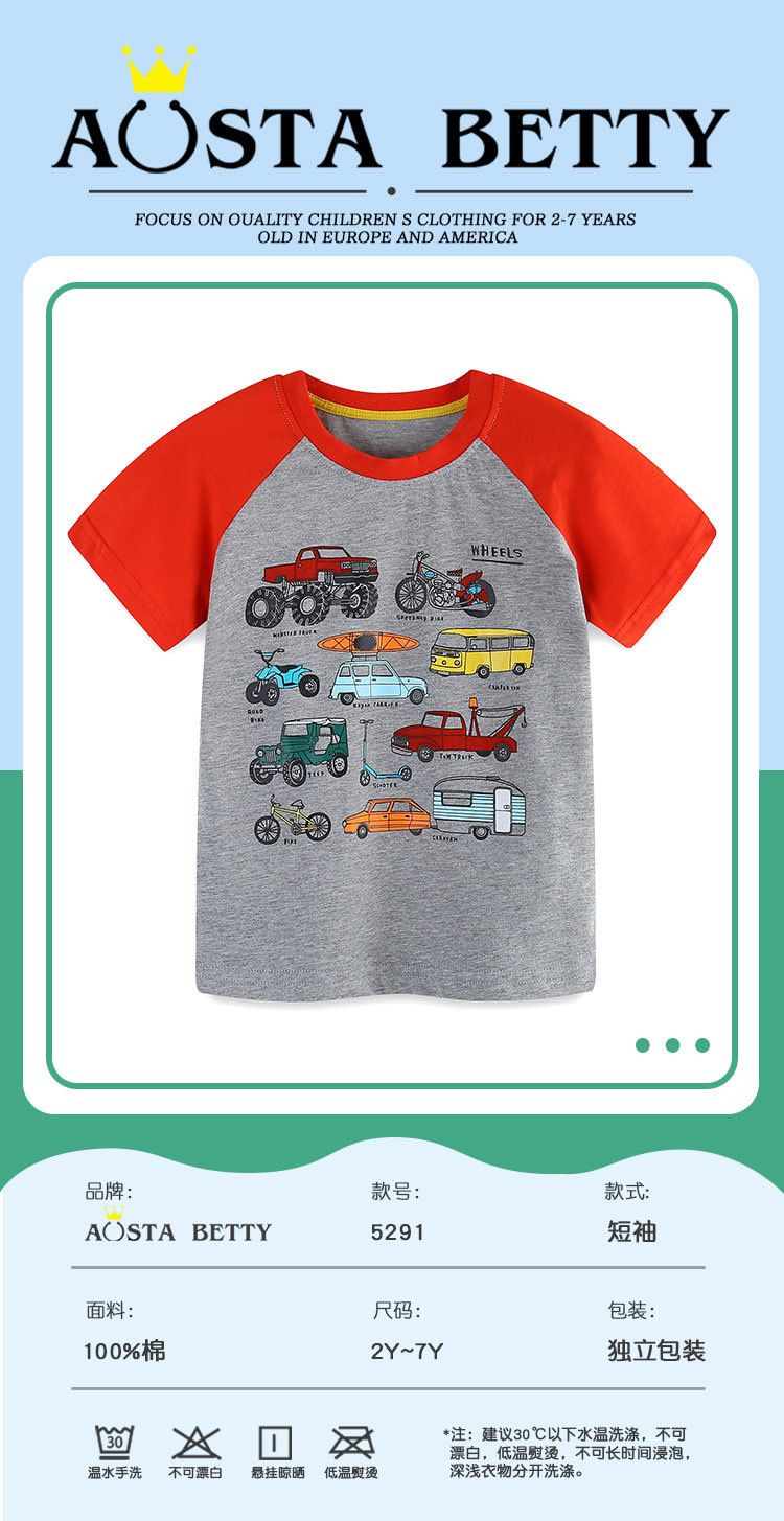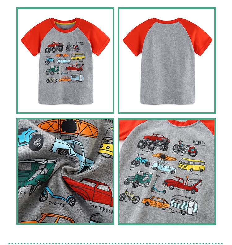 여름 새 소년 반팔 티셔츠 유럽과 미국 스타일의 어린이 만화 둥근 목 탑 아기 티셔츠 국경 간 공급스토어 가기