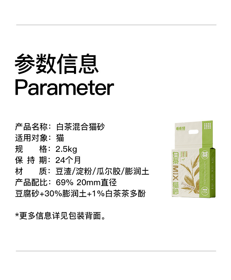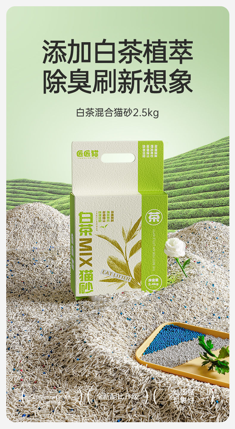 • 흰 차 혼합 고양이 쓰레기 2.4kg [2 팩]