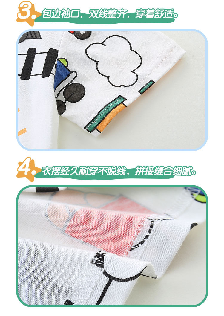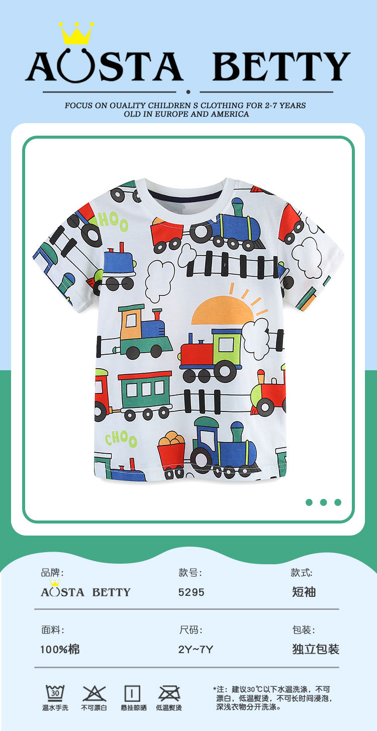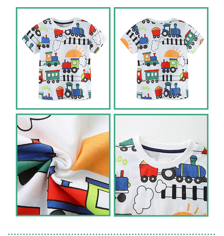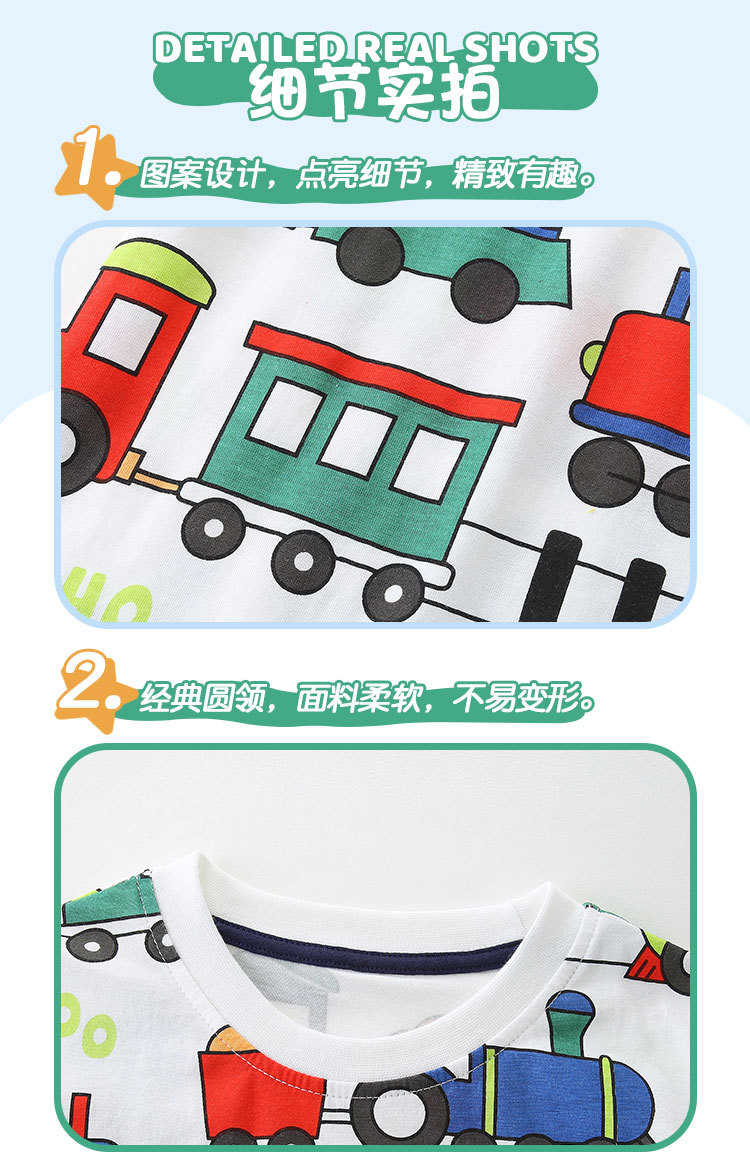 2025 여름 새 소년 반팔 티셔츠 중소 어린이 만화 기차 인쇄 풀오버 캐주얼 라운드 넥 탑스토어 가기