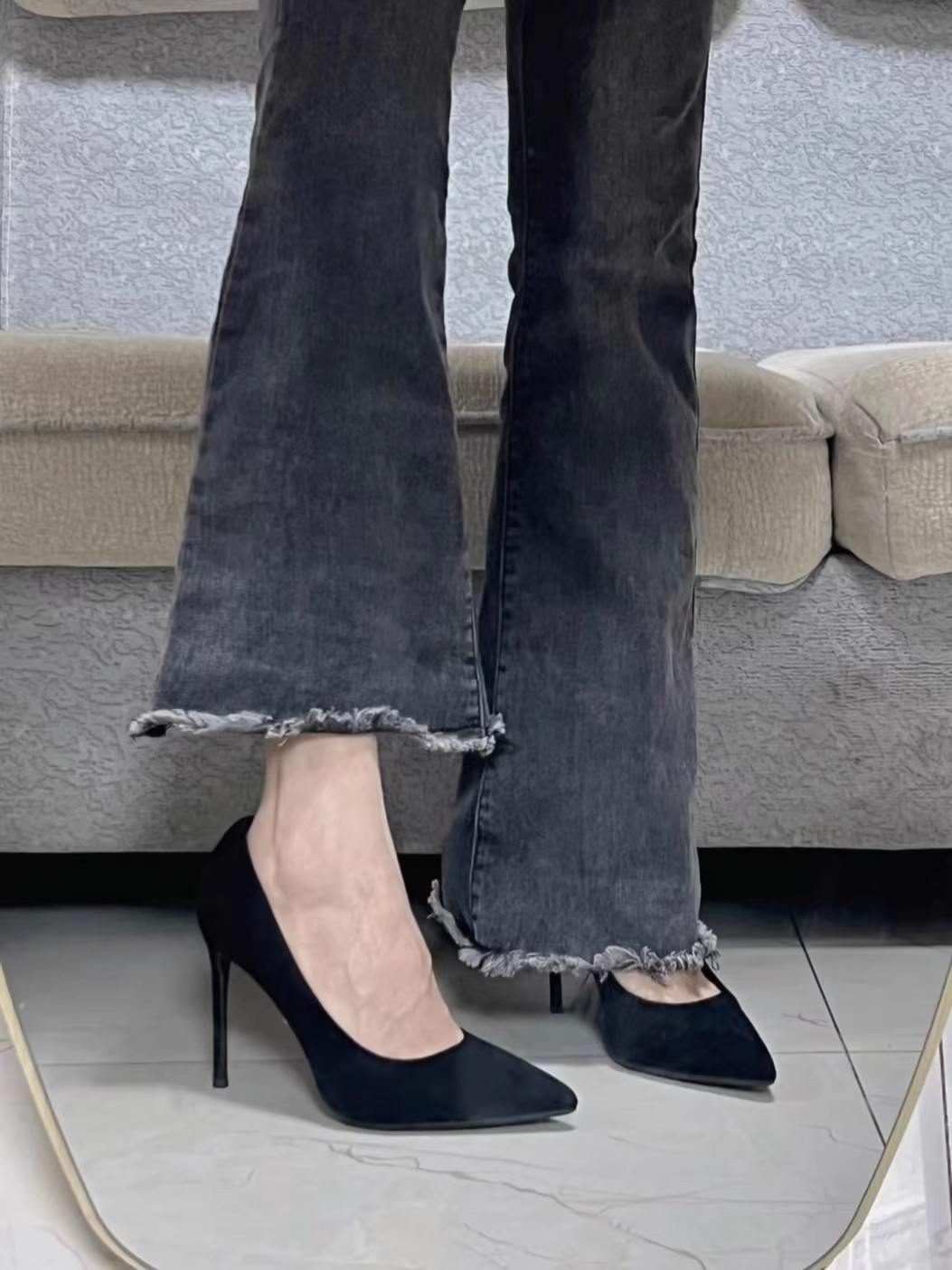 2023 봄과 가을 새로운 패션 블랙 하이힐 여성 스틸레토 10cm 섹시한 유럽과 미국의 프랑스 여자 신발스토어 가기