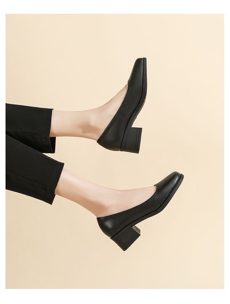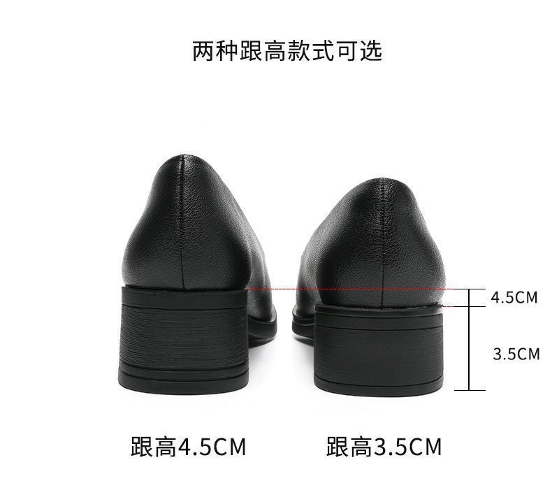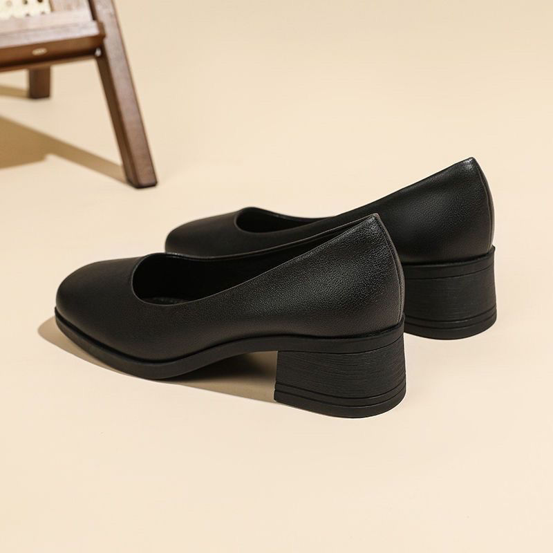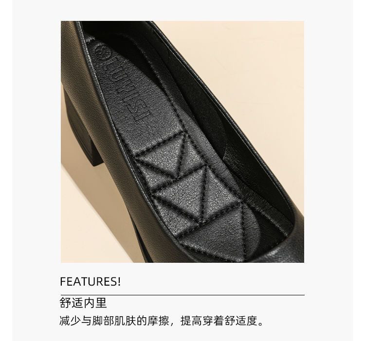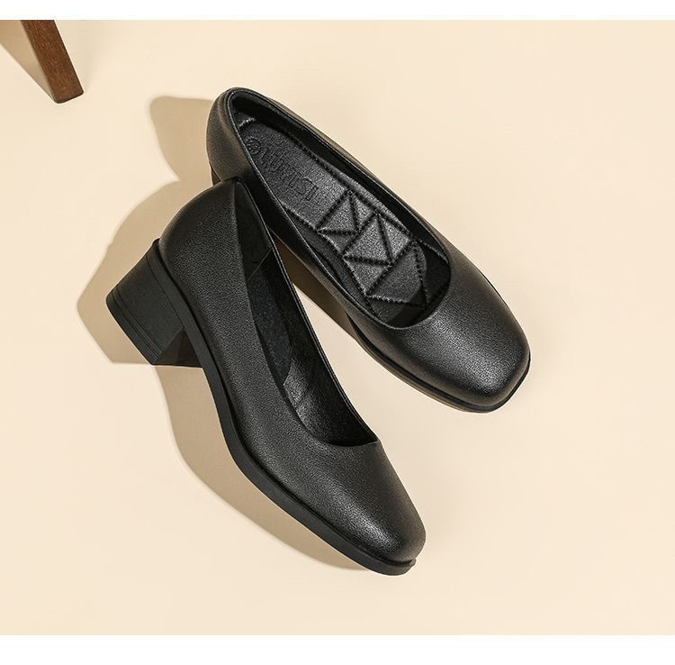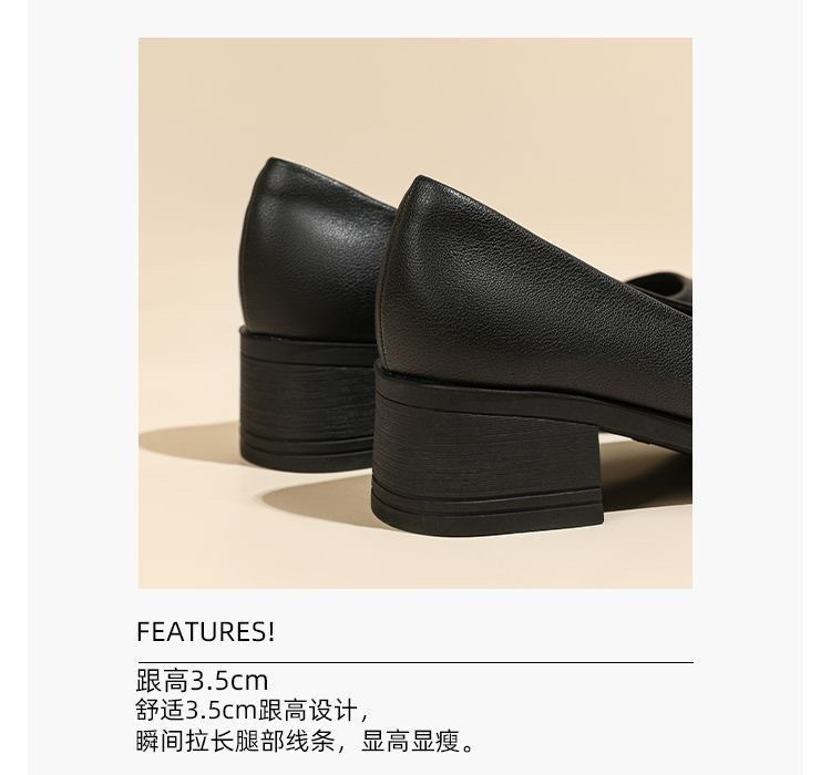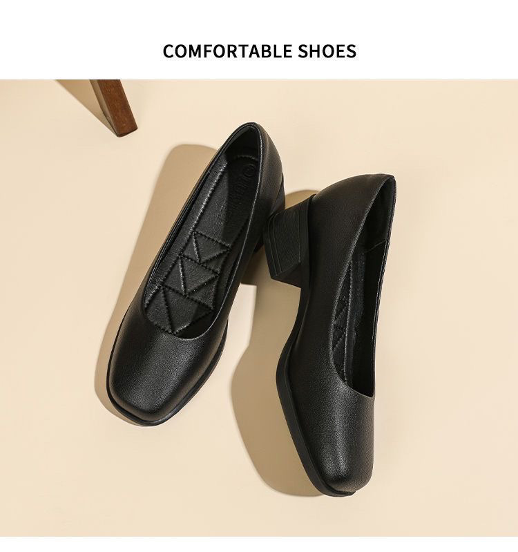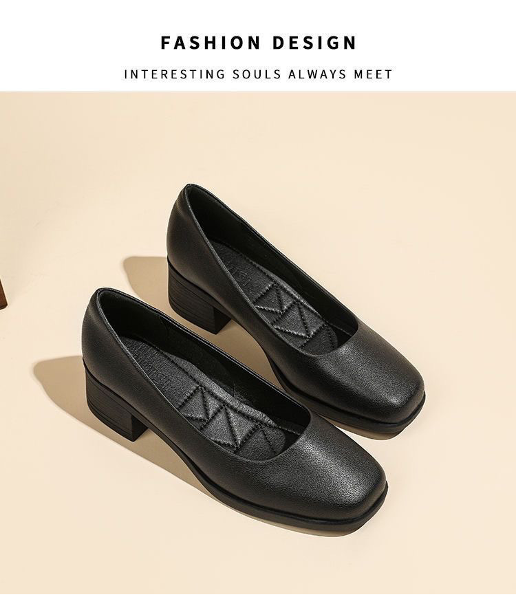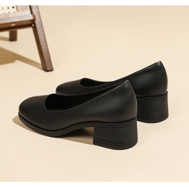 여성 신발 새로운 하이힐 청키 힐 봄과 가을 다재다능한 가죽 신발 작업 신발 오래 서 피곤하지 않은 단일 신발스토어 가기