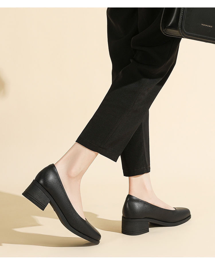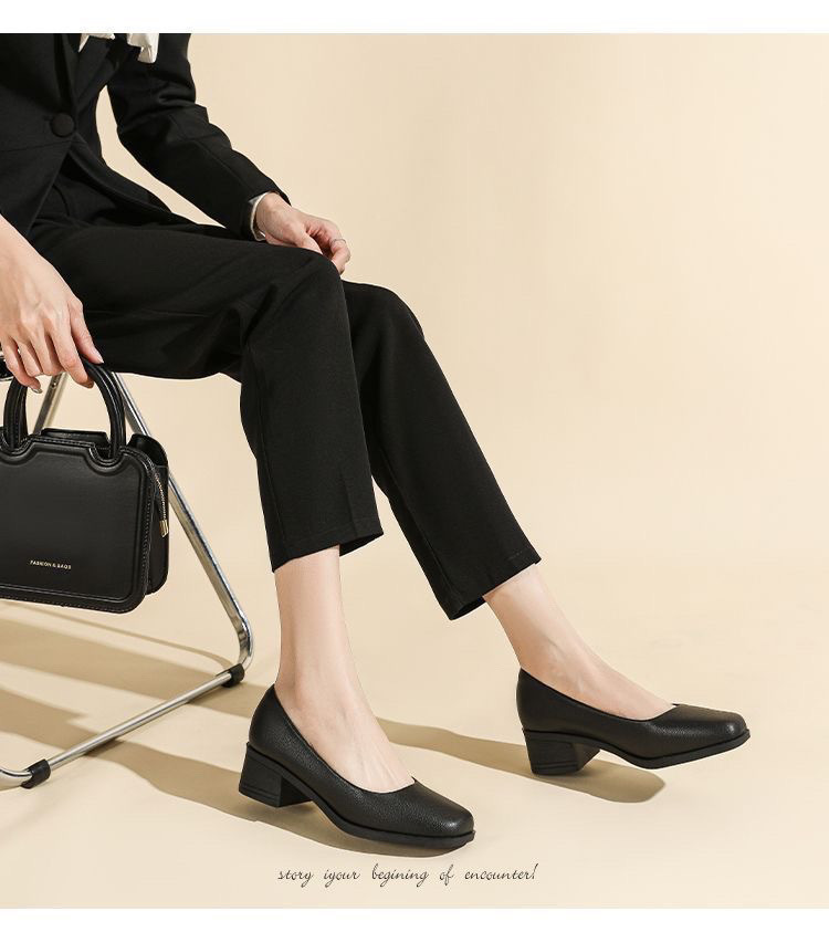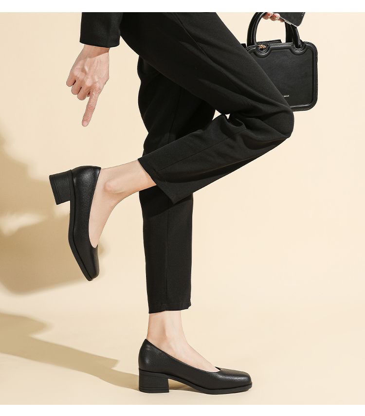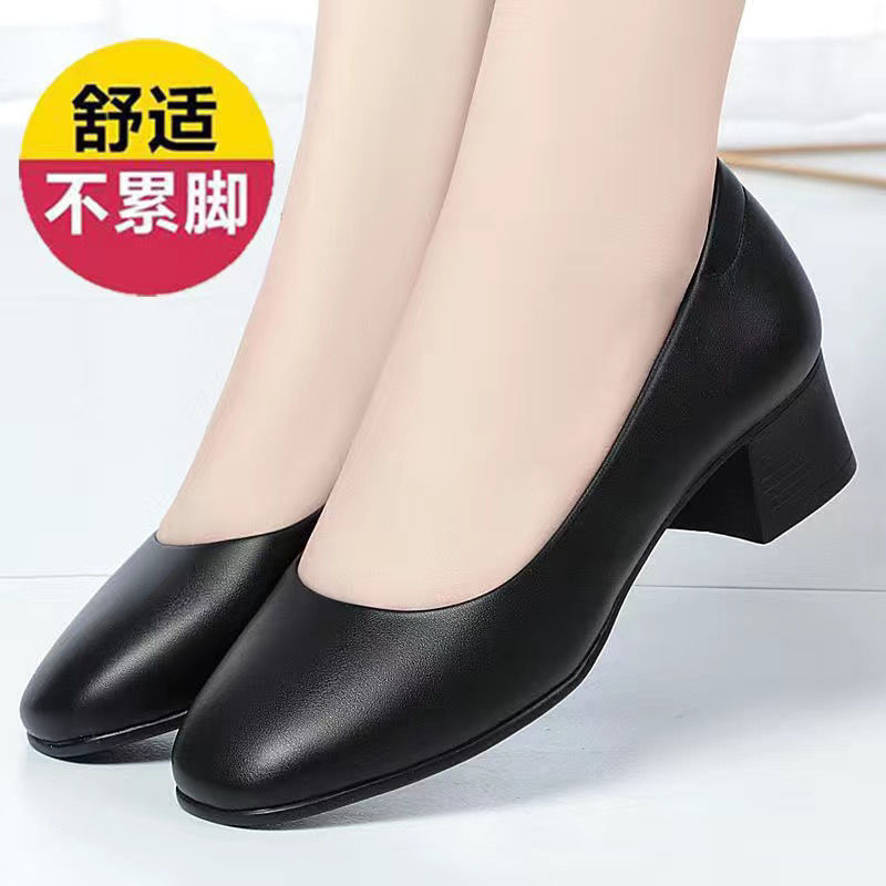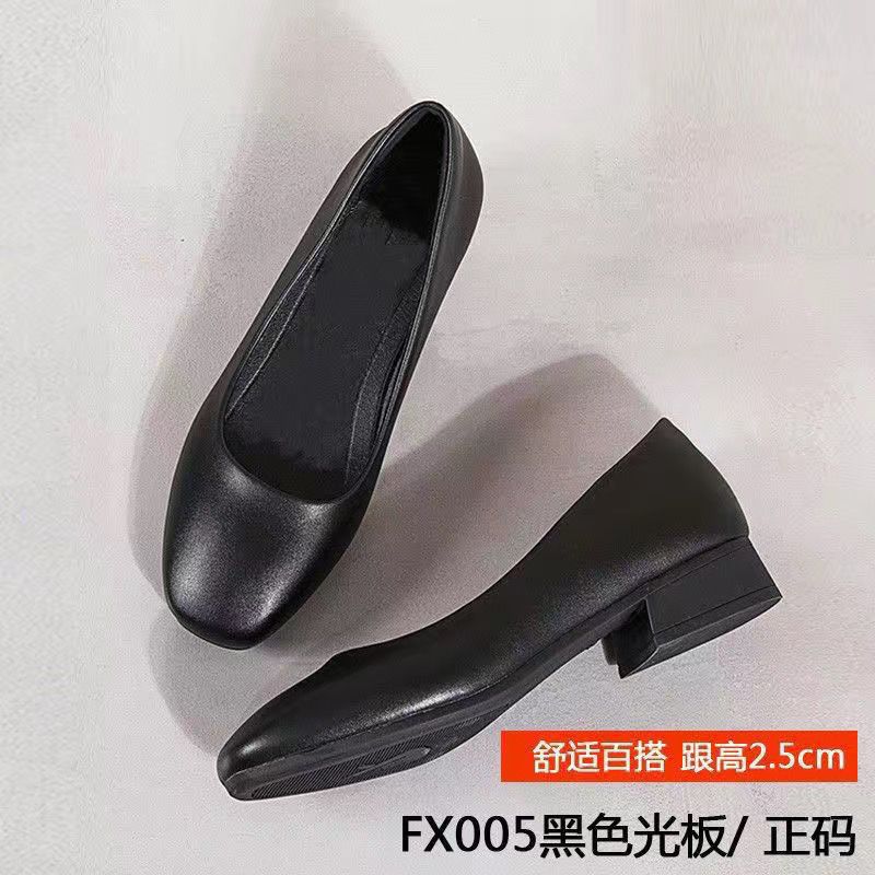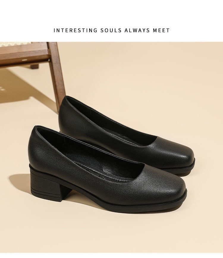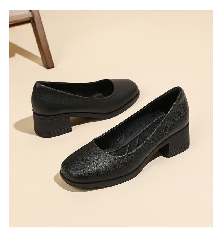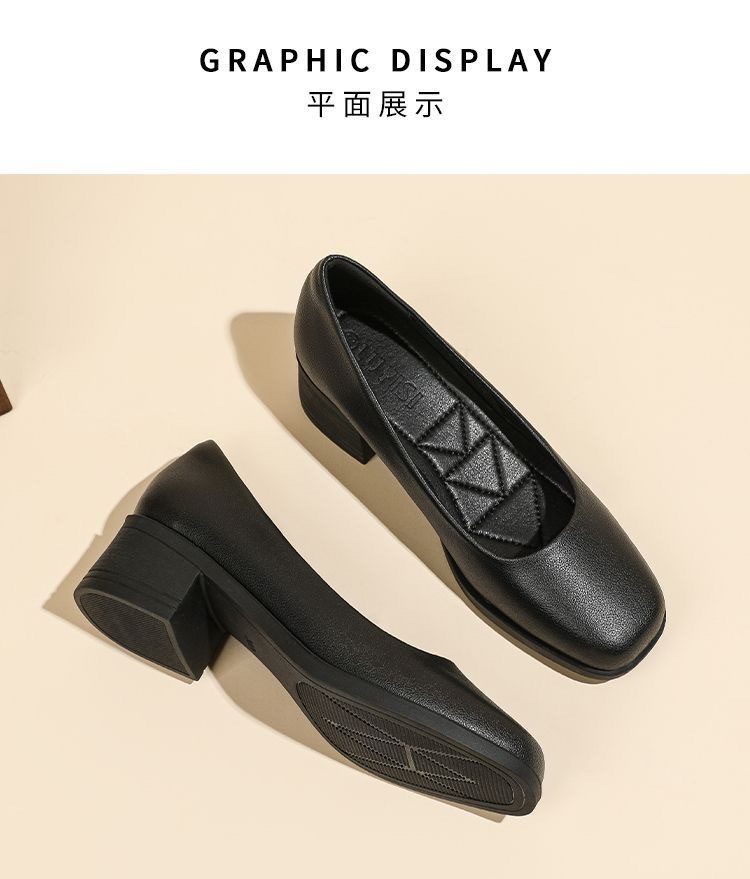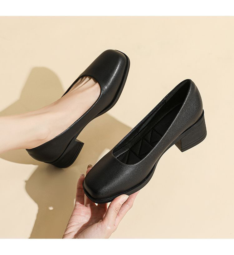 여성 신발 새로운 하이힐 청키 힐 봄과 가을 다재다능한 가죽 신발 작업 신발 오래 서 피곤하지 않은 단일 신발스토어 가기