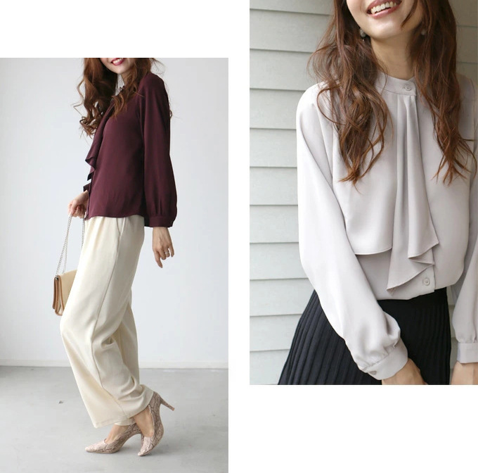 국경 간 공장 일본 하이 퀄리티 우아한 쉬폰 여성 셔츠 사무실 전문 통근 여성 셔츠스토어 가기
