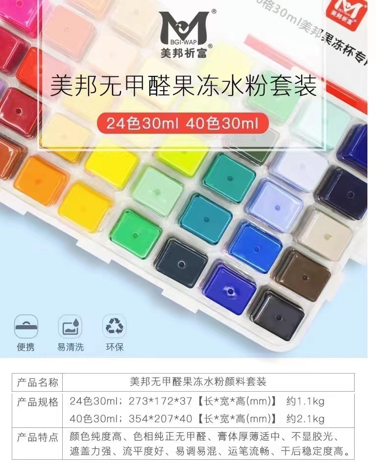 Meibang gouache 페인트 24 컬러 페인팅 소재 아트 젤리 세트 공동 검사 교육 어린이 구 아슈 페인트