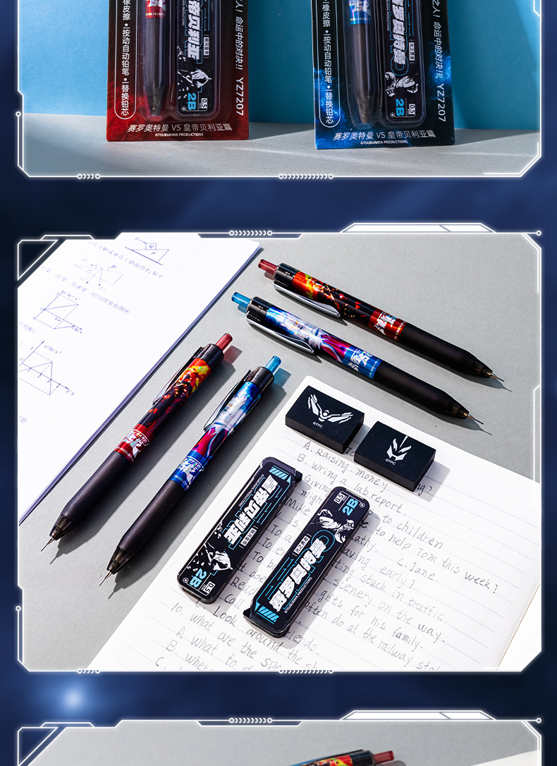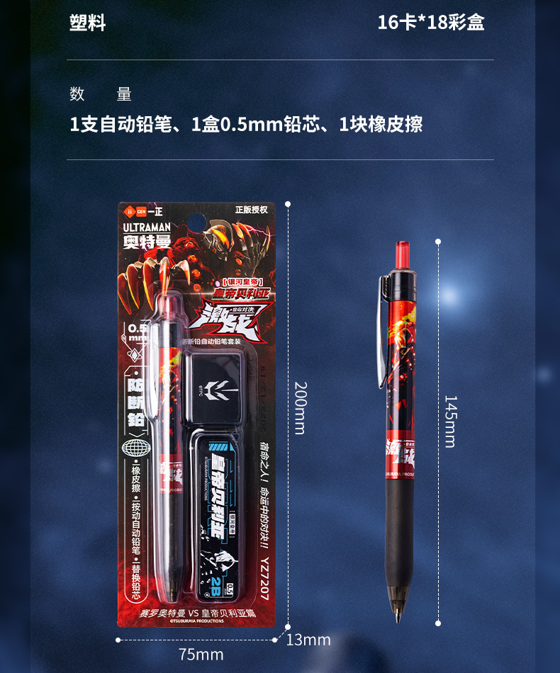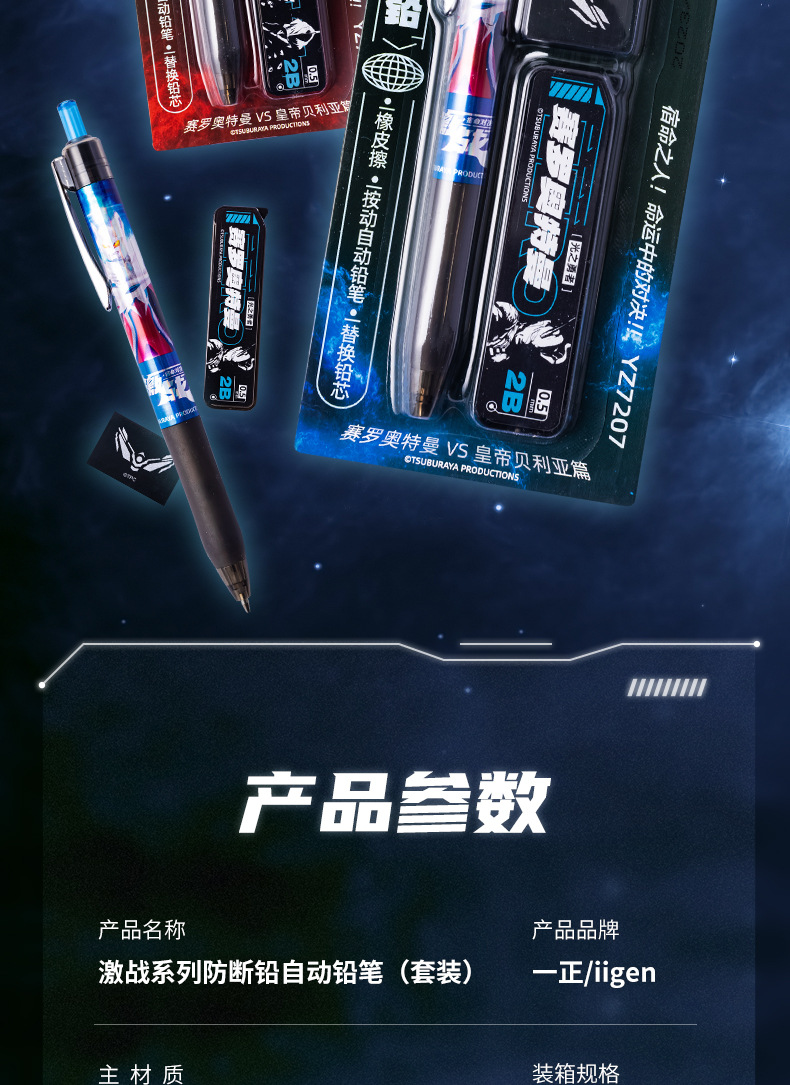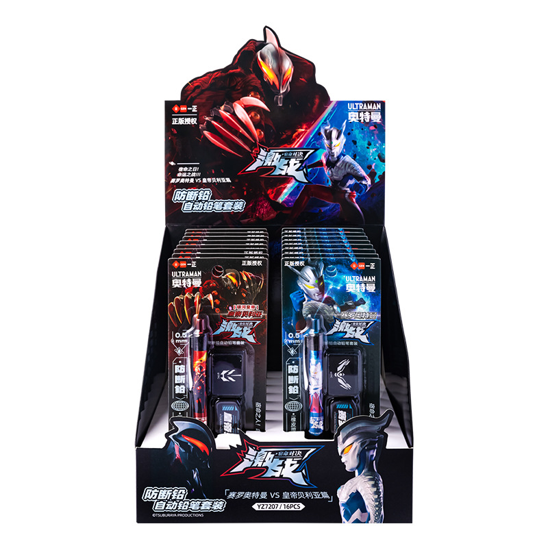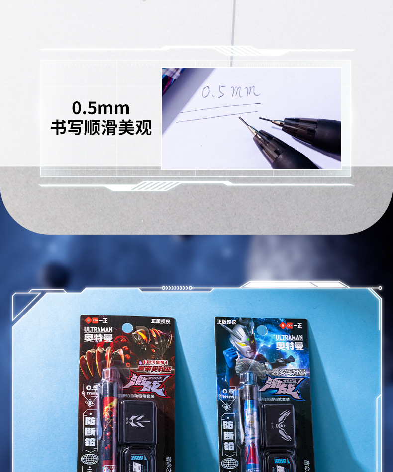 Iigen Yizheng 문구 Ultraman 이미지 안티 브레이크 리드 자동 연필 세트 학생 0.5 선명하지 않은 연필 리드스토어 가기