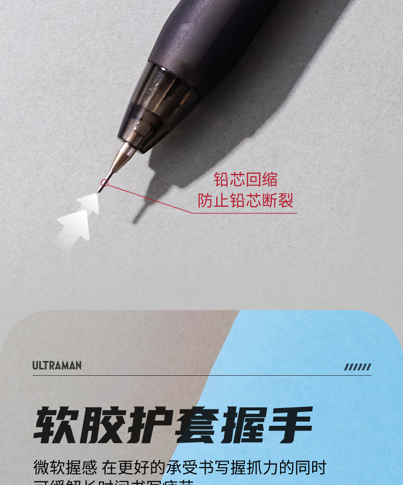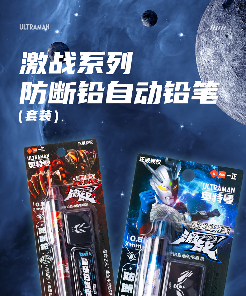 Iigen Yizheng 문구 Ultraman 이미지 안티 브레이크 리드 자동 연필 세트 학생 0.5 선명하지 않은 연필 리드