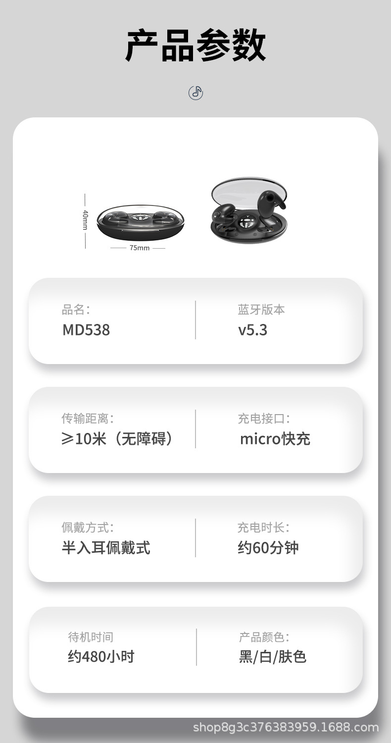 MD538 소스 공장 직접 무선 수면 블루투스 헤드셋 보이지 않는 슈퍼 장거리 국경 간 전자 상거래 폭발