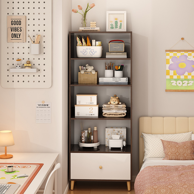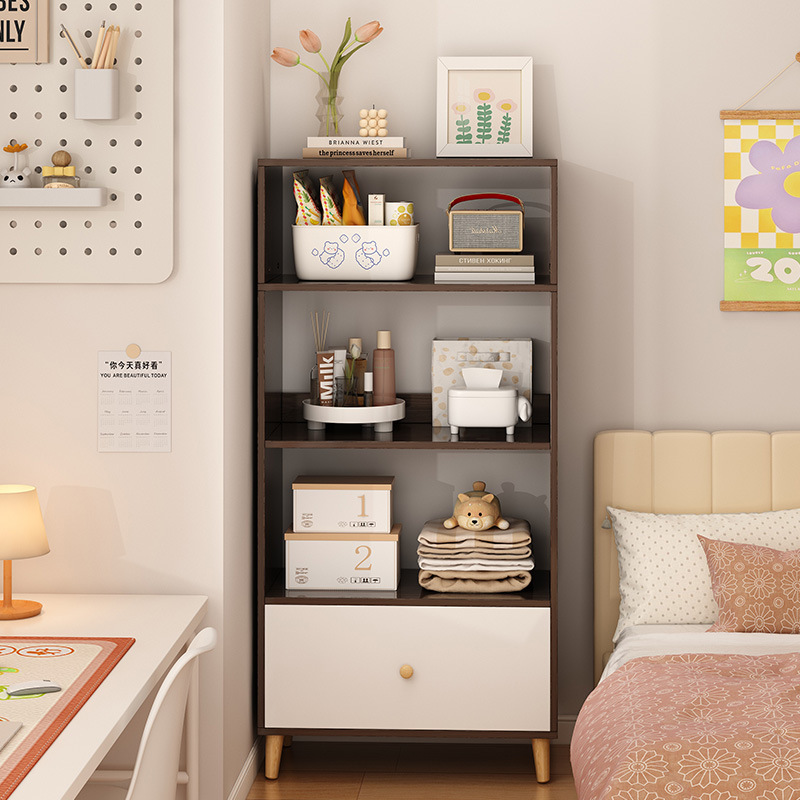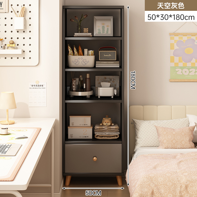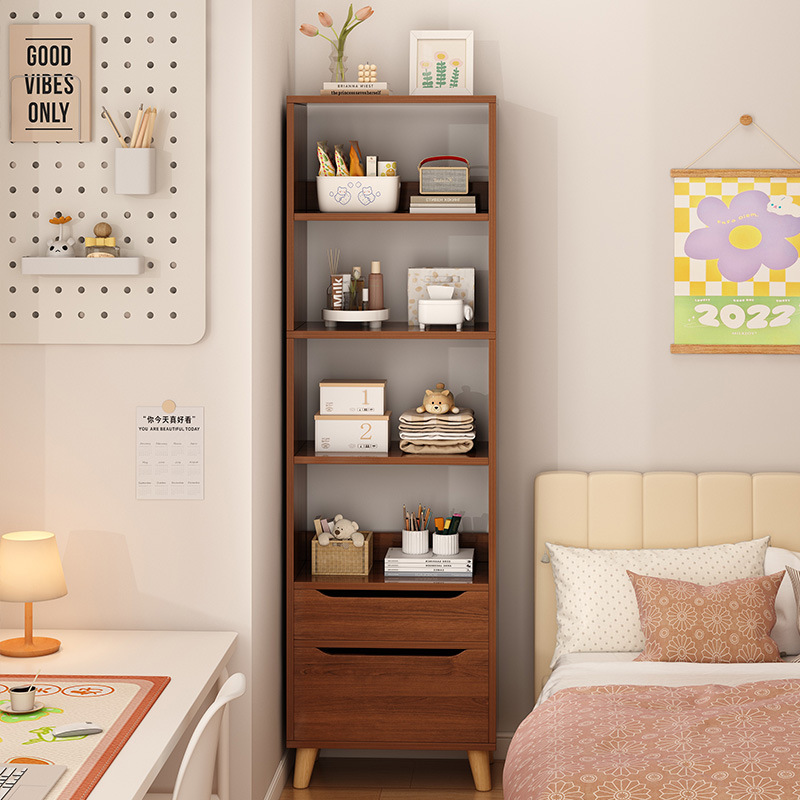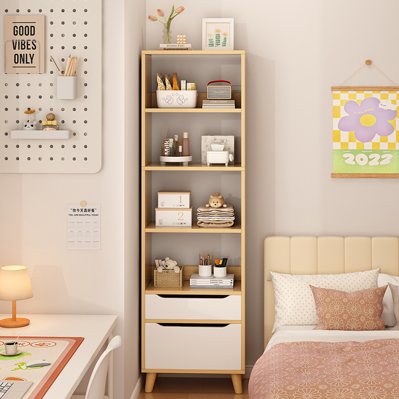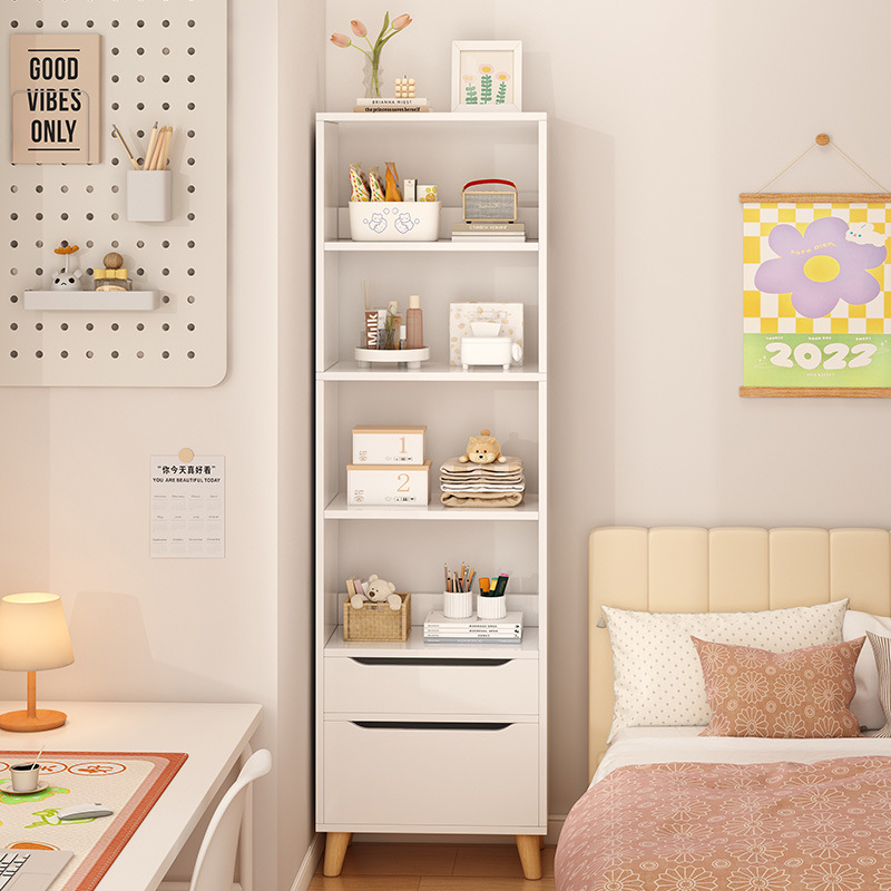 窄缝小书柜靠墙边收纳置物架书架落地简易家用多层客厅柜子储物柜