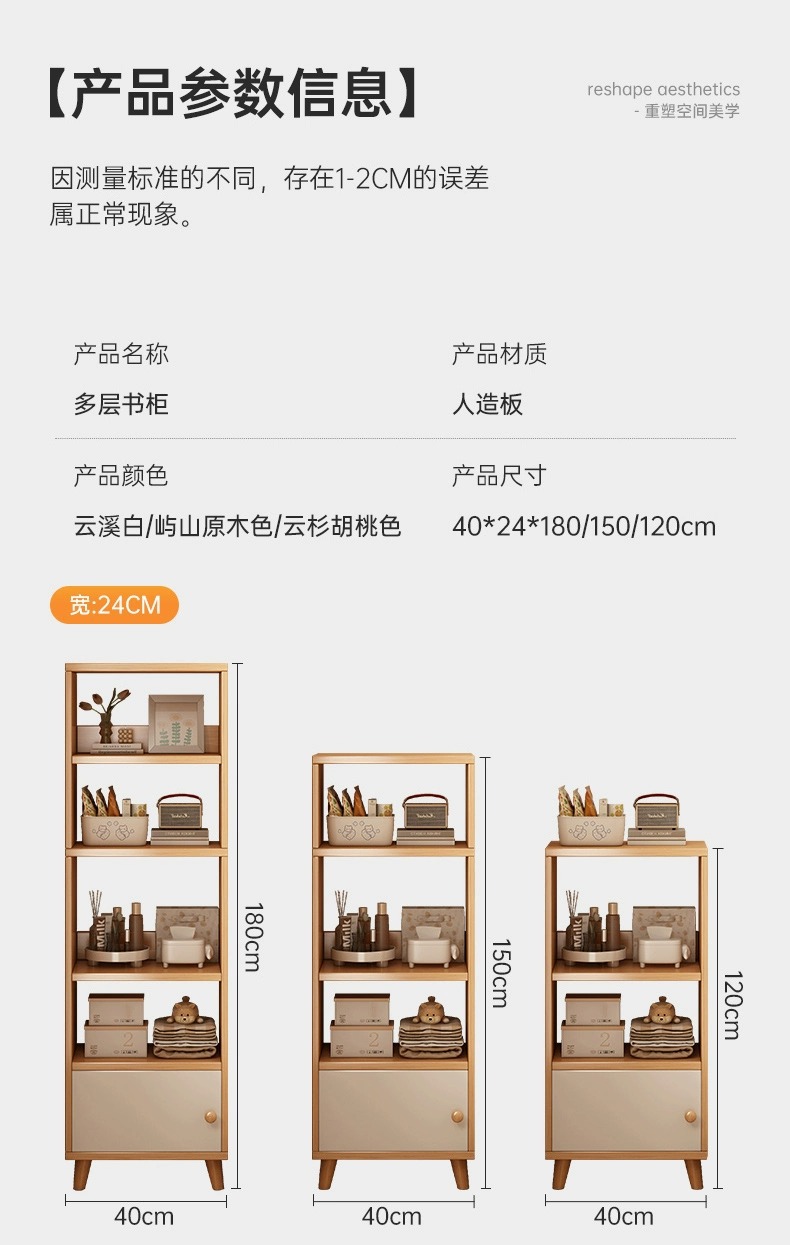 • [4 층 모델] 40*24*120cm 목가적 인 오크 색상