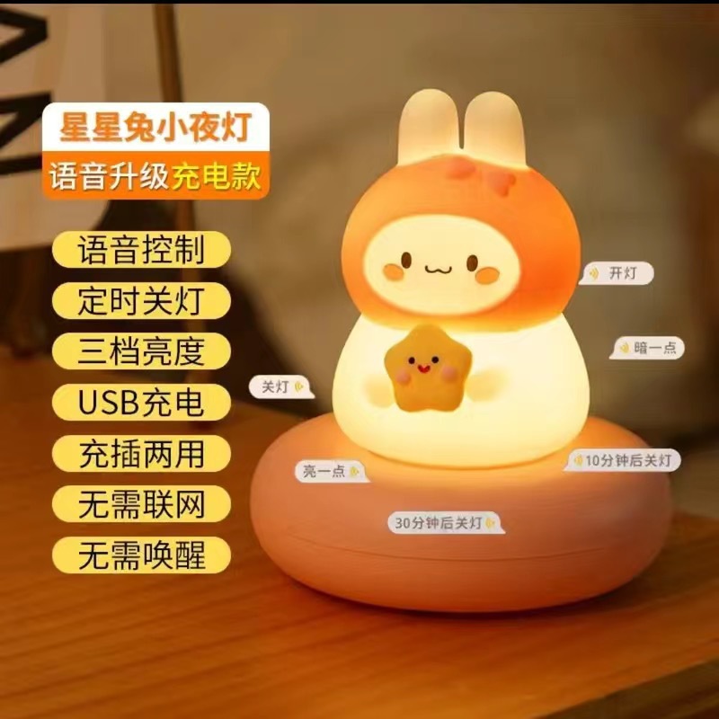 충전 스마트 언어 야간 조명 타이밍 스위치 야간 조명 USB 야간 조명 수면 밤 음성 제어 야간 조명스토어 가기
