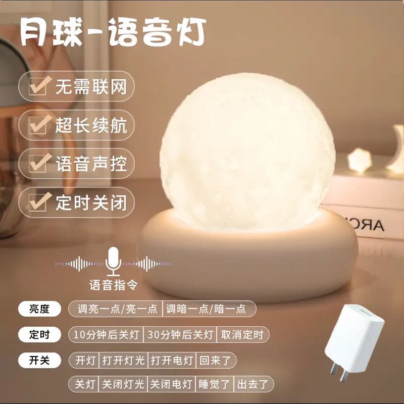 • 충전식 [음성 지원] 3D 달 무드등 [USB 플러그 증정]