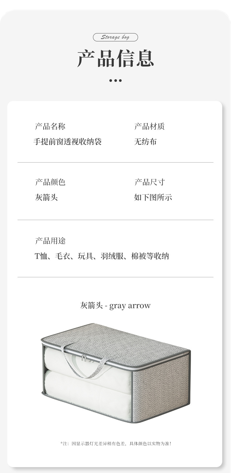 휴대용 부직포 앞 창문 시스루 보관 가방 대용량 옷 퀼트 접이식 정리 가방 방진 방습