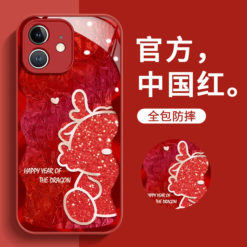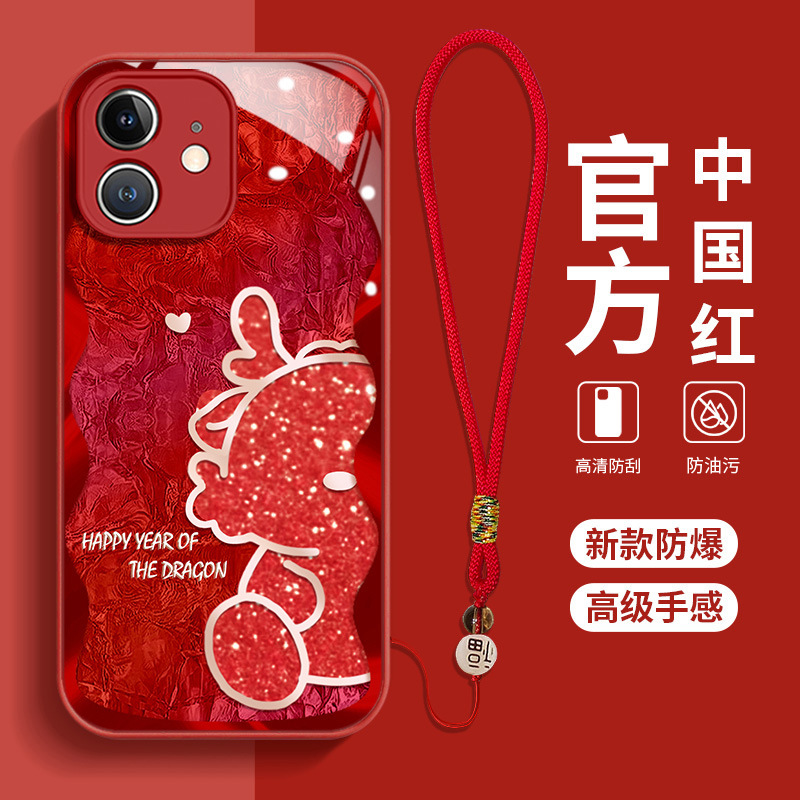 아이폰 15 전화 케이스 14pro 새해 2024 레드 13 년 드래곤 전체 범위 12pro 단순 11 보호 케이스