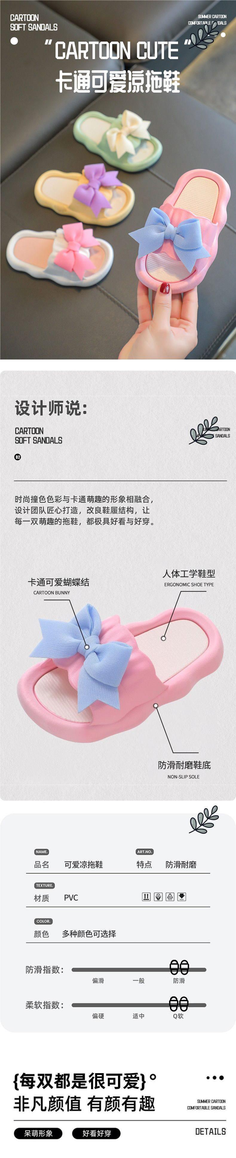 2026 사계절용 여아 공주 리본 슬리퍼, 실내외 겸용, 미끄럼 방지, 여아용 두꺼운 밑창 캐주얼 슬리퍼스토어 가기