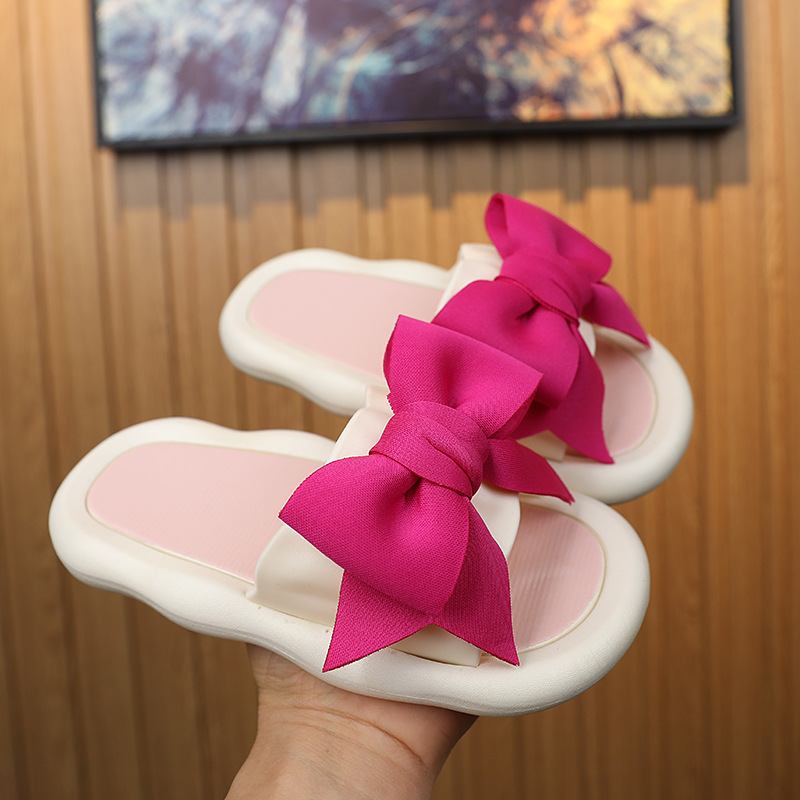 2026 사계절용 여아 공주 리본 슬리퍼, 실내외 겸용, 미끄럼 방지, 여아용 두꺼운 밑창 캐주얼 슬리퍼