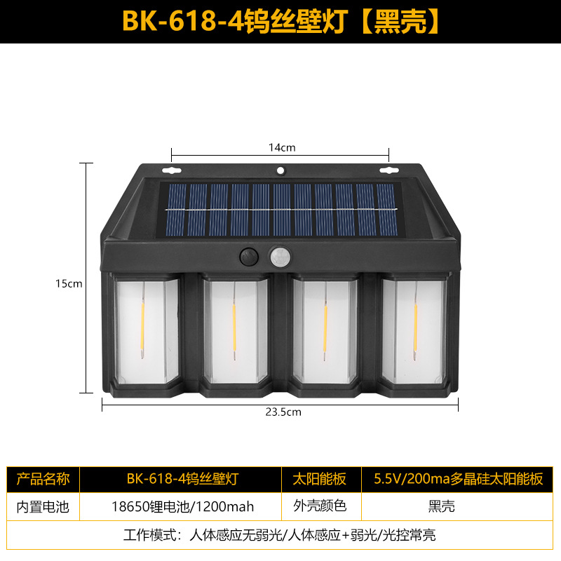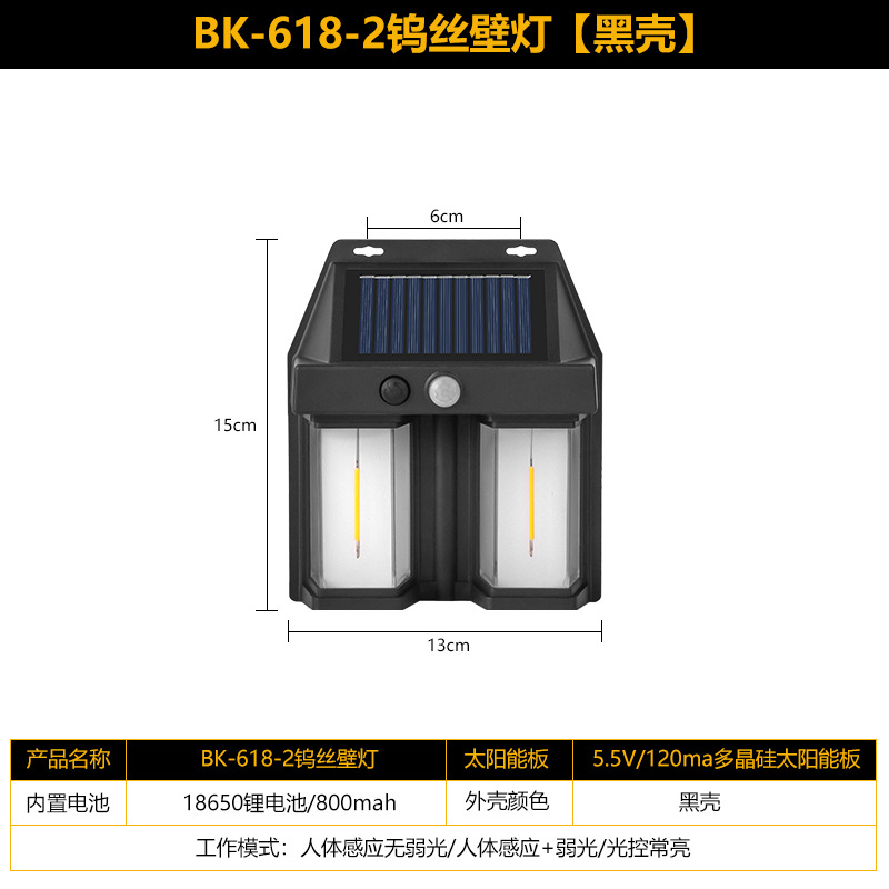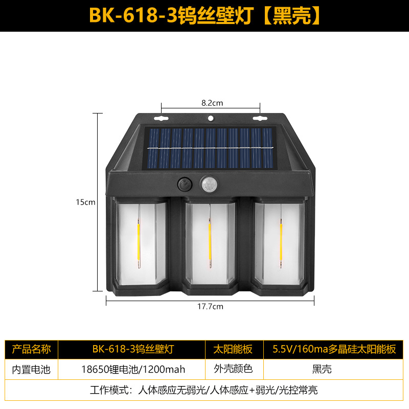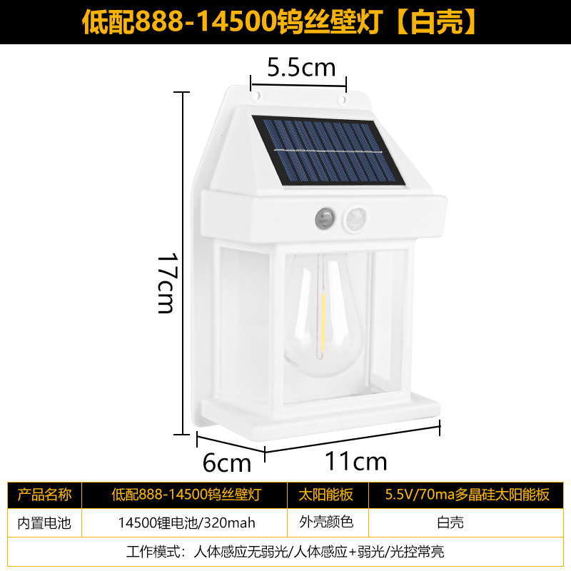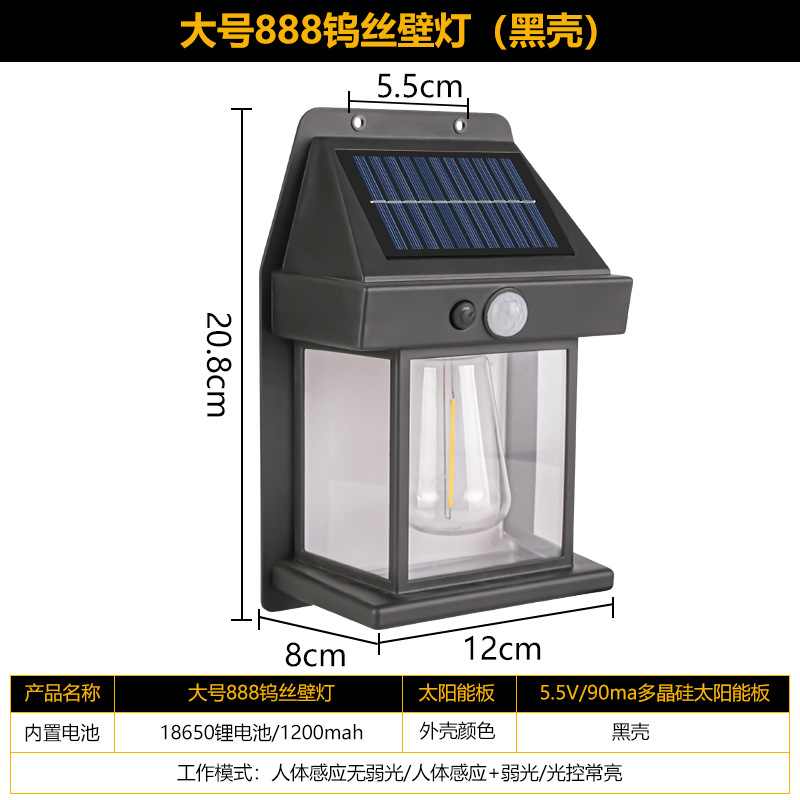 태양 야외 벽 램프 인체 유도 3 모드 텅스텐 와이어 벽 램프 정원 빌라 안뜰 밤 빛 방비