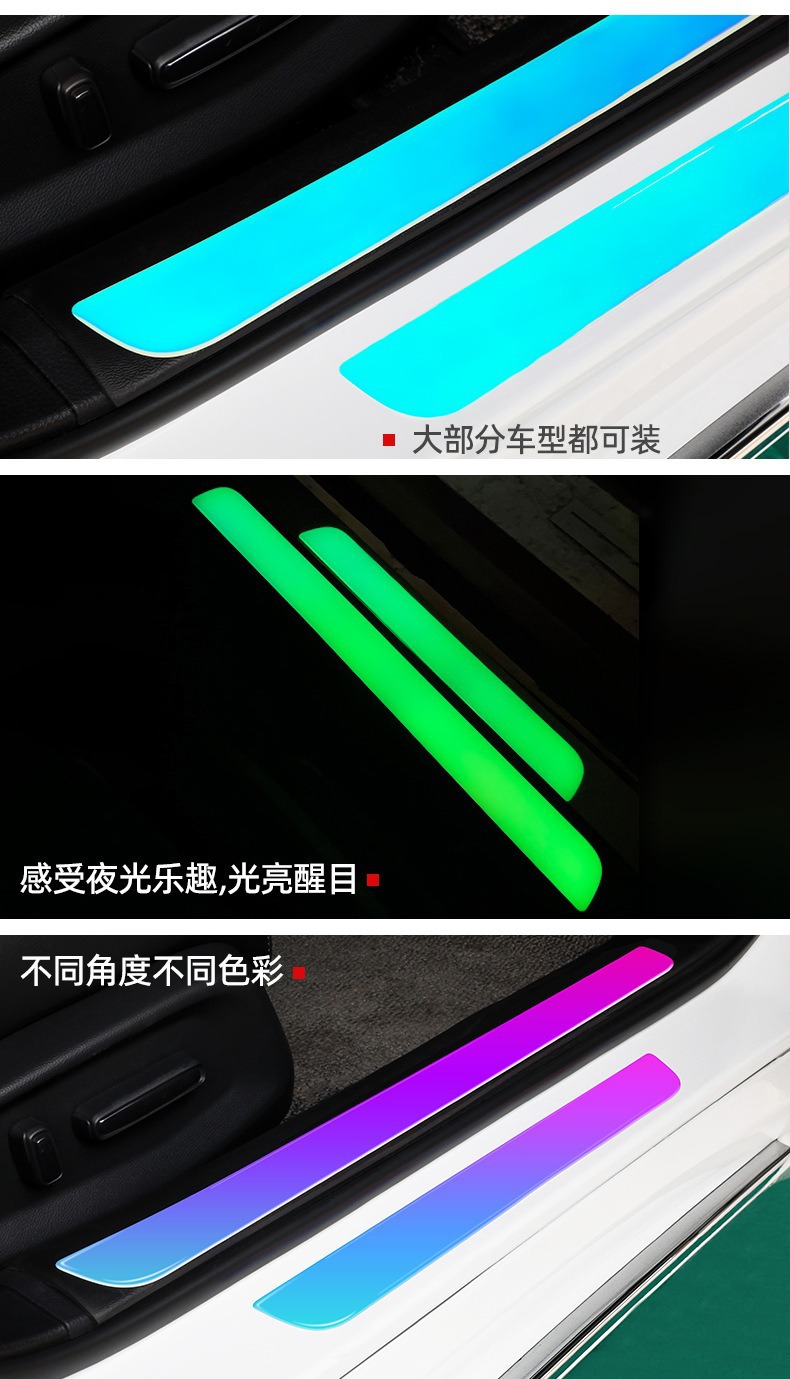 자동차 형광 문틀 안티 트레드 보호 스티커 환영 페달 안티 스크래치 스티커 트렁크 다채로운 발광 스트립 자동차 스티커스토어 가기