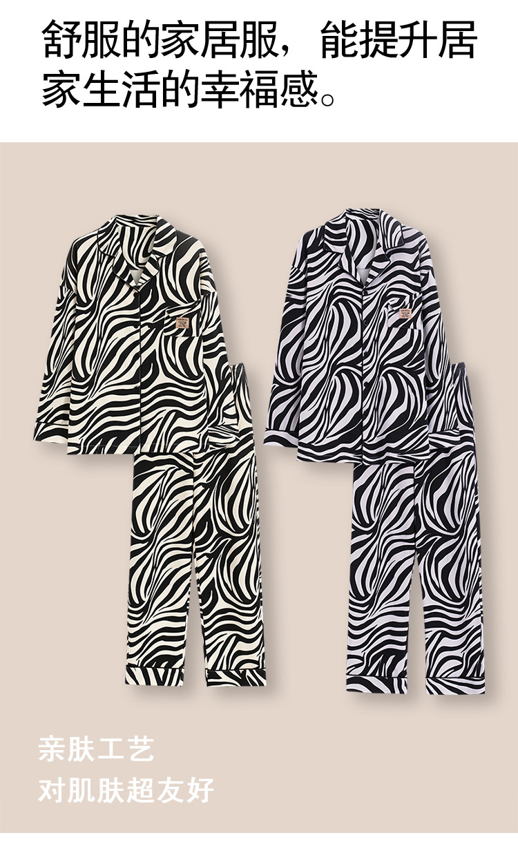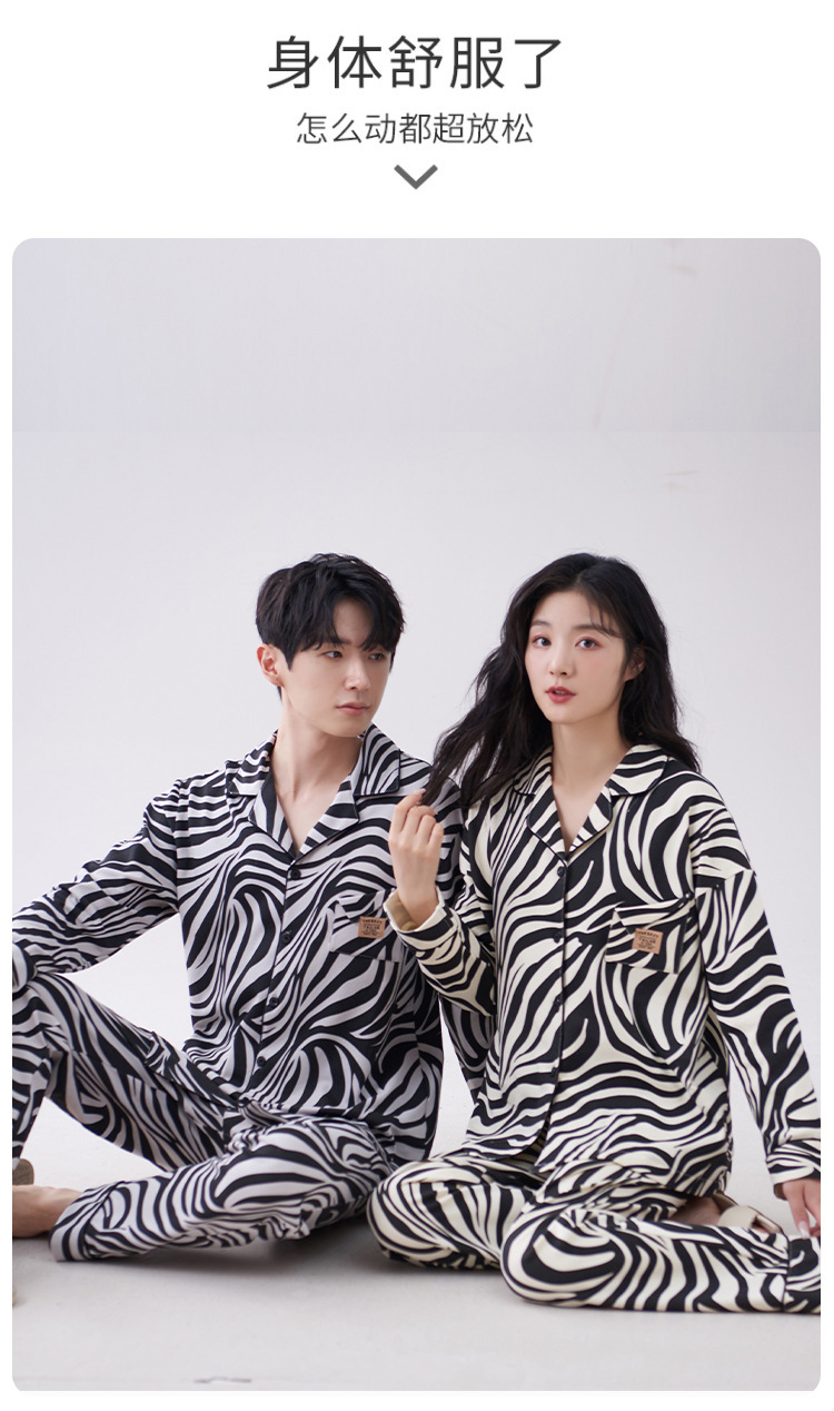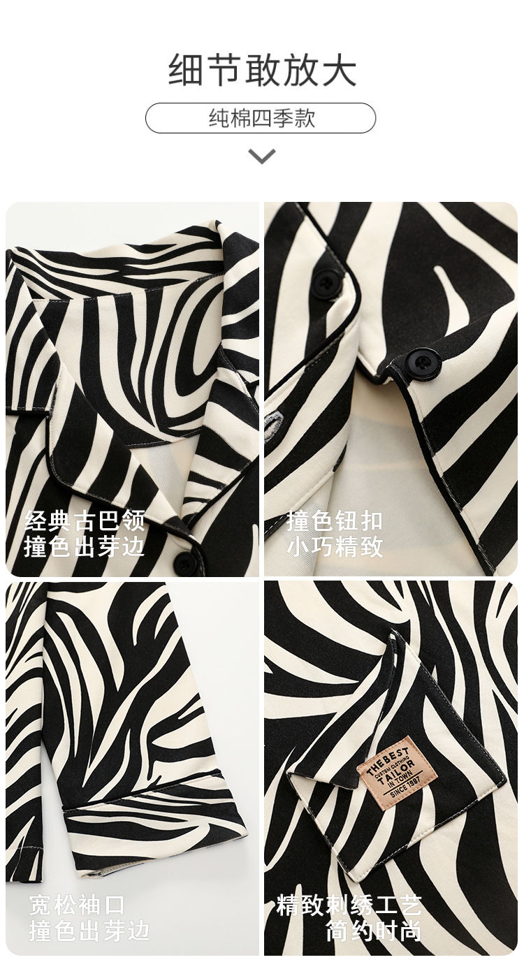 커플 잠옷 봄과 가을면 긴 소매 7a 항균 소녀 캐주얼 얼룩말 패턴 남성 홈 웨어는 세트 밖에서 착용 할 수 있습니다스토어 가기