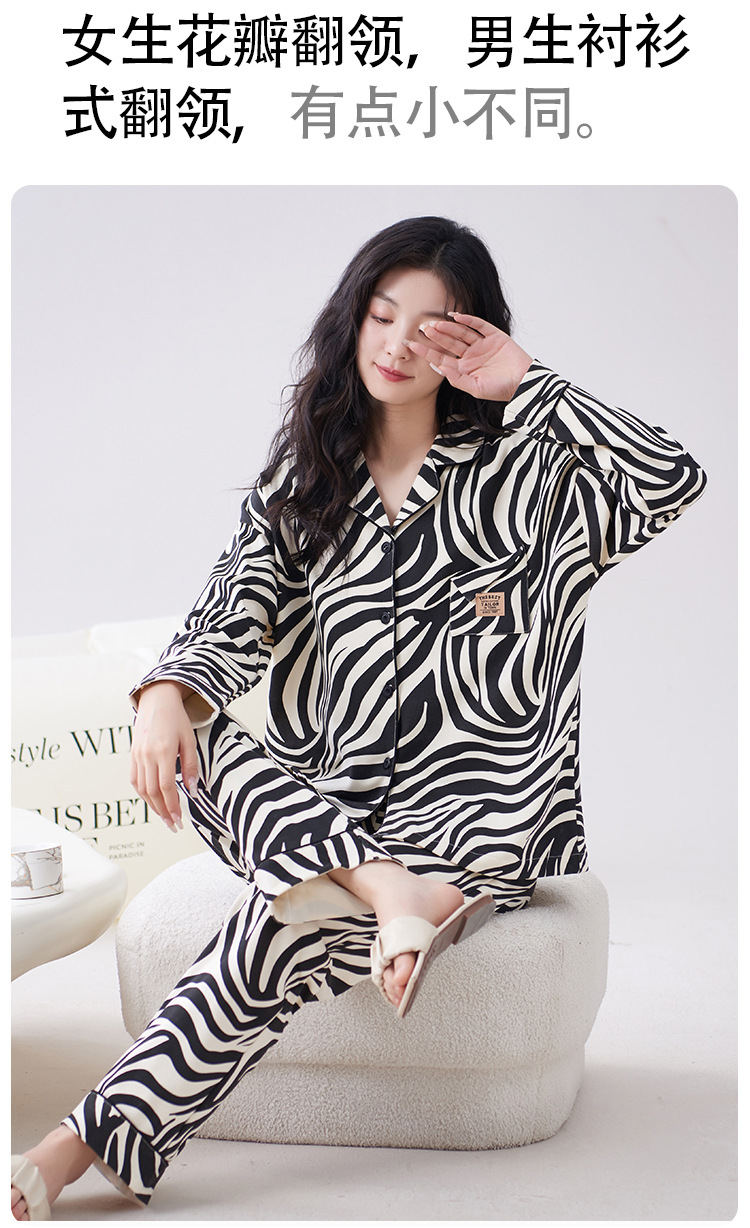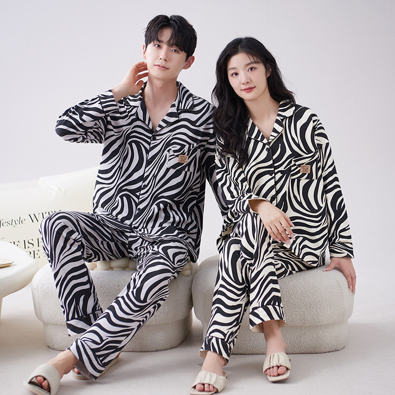 커플 잠옷 봄과 가을면 긴 소매 7a 항균 소녀 캐주얼 얼룩말 패턴 남성 홈 웨어는 세트 밖에서 착용 할 수 있습니다